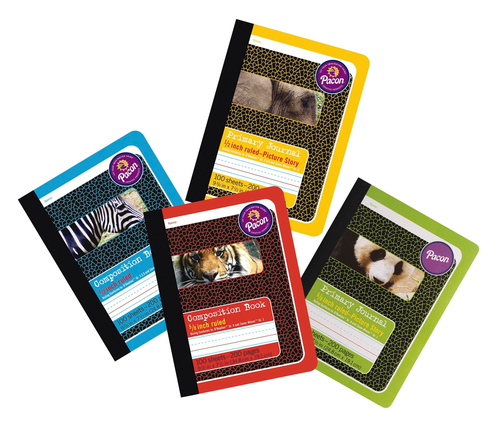 Pacon Composition Book features colorful hard cover that makes finding the grade level and ruling easy. This sturdy book with 100 sheets/200 pages is perfect for taking notes, keeping a journal, or recording homework assignments. Includes the alphabet printed on inside front cover and conforms to Zaner-Bloser, as well as D'Nealian handwriting styles. Measures 9-3/4 x 7-1/2 inches.