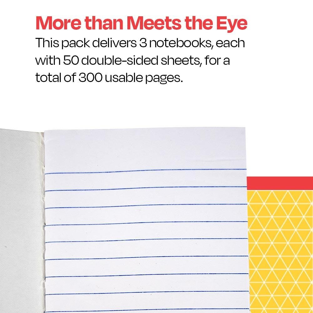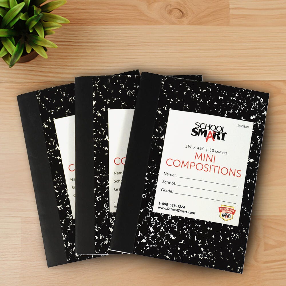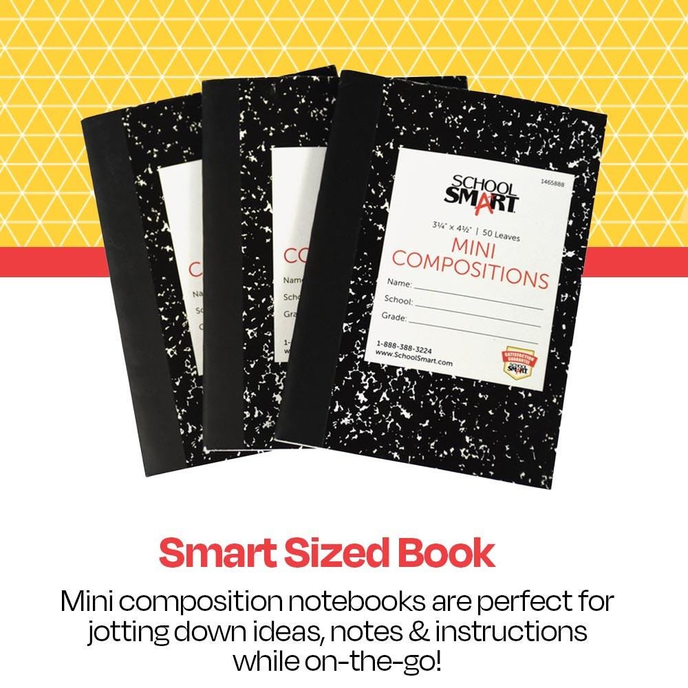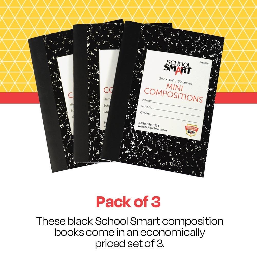 School Smart Mini Composition Book, 3-1/4 x 4-1/2 Inches, 50 Sheets, Pack of 3