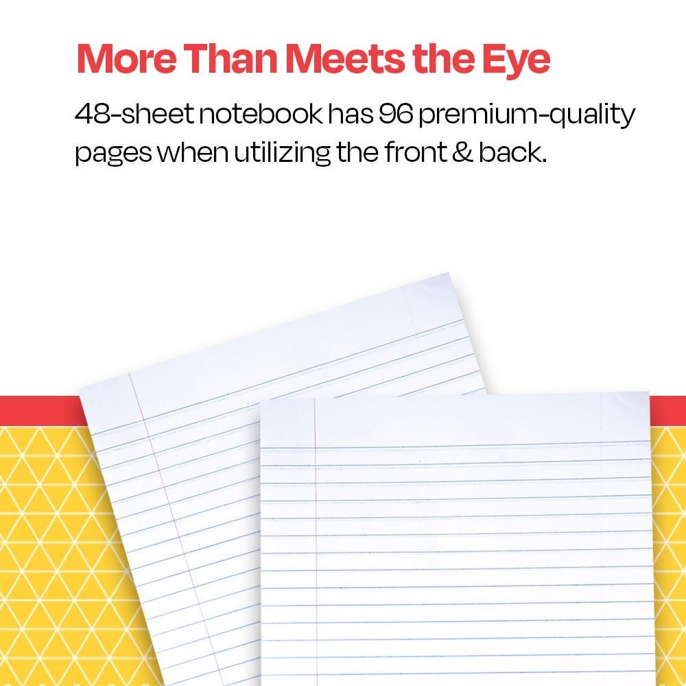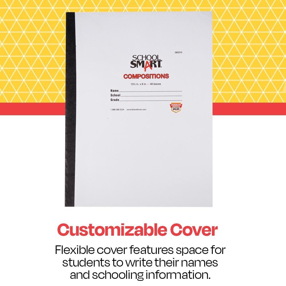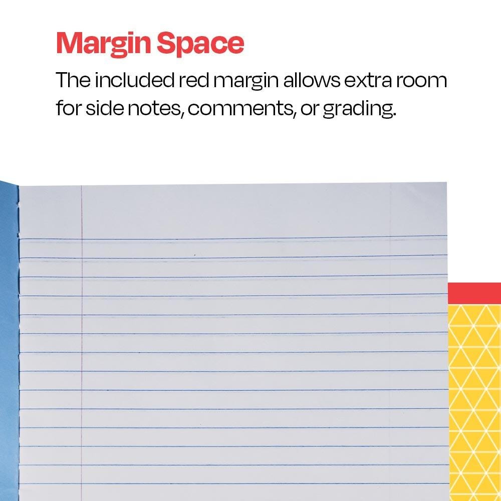 Features Quality white paper, 3/8 inch ruled with red margin Ideal for use with pencil, pen or ink Durable flexible cover has space for name, school and grade Economically priced option for school, home or office use