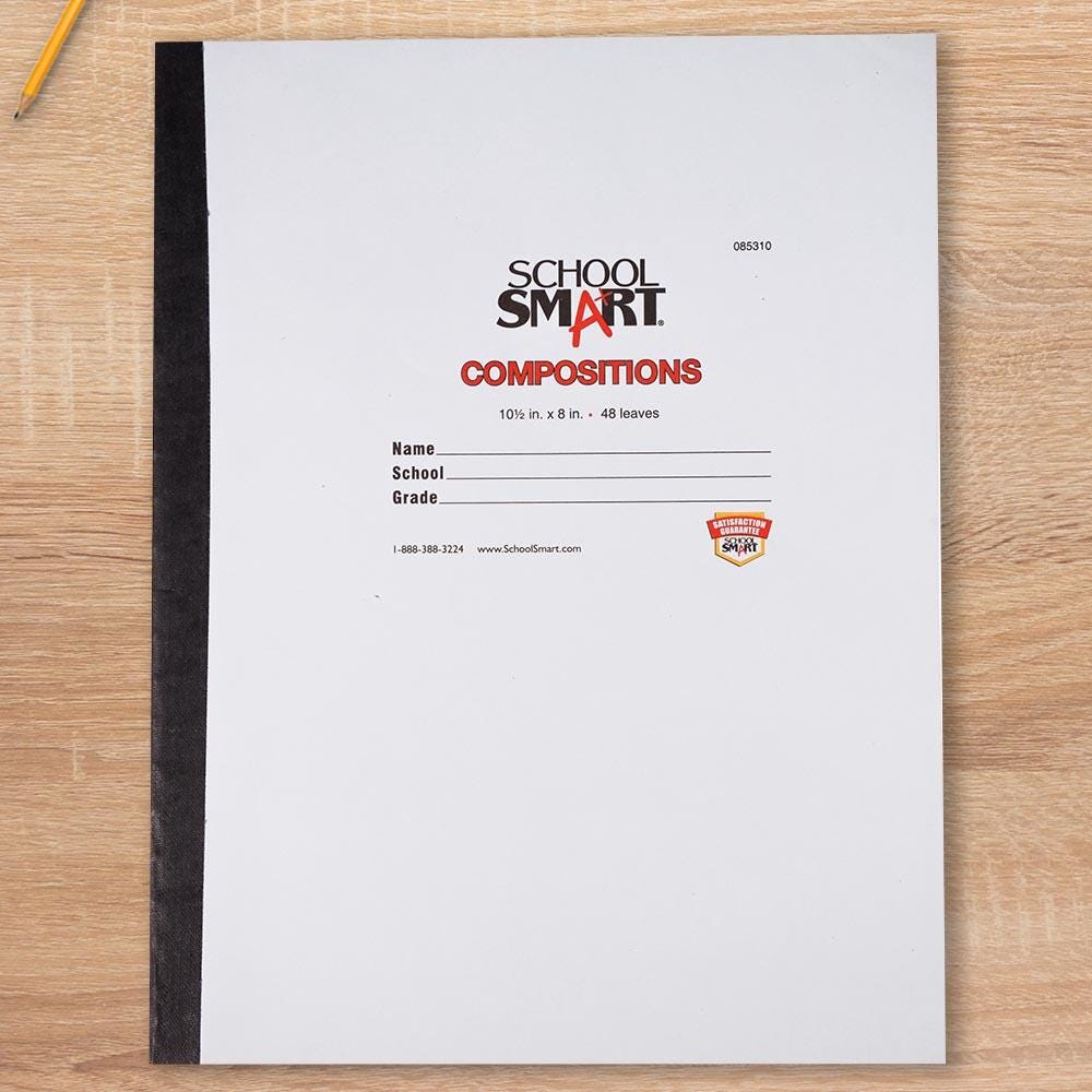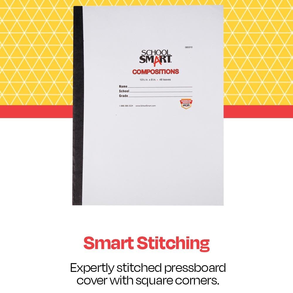 School Smart Stitched Cover Composition Book, Red Margin, 8 x 10-1/2 Inches, 96 Pages