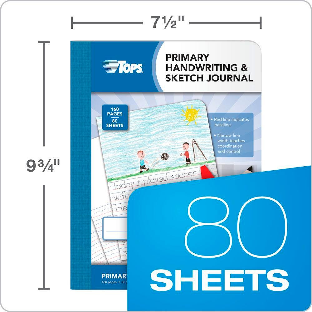 Description The Tops Primary Journal, measuring 9-3/4 x 7-1/2 inches, contains 80 sheets and is ideal for handwriting and sketching. Great for short stories, story boarding, essay work and more!