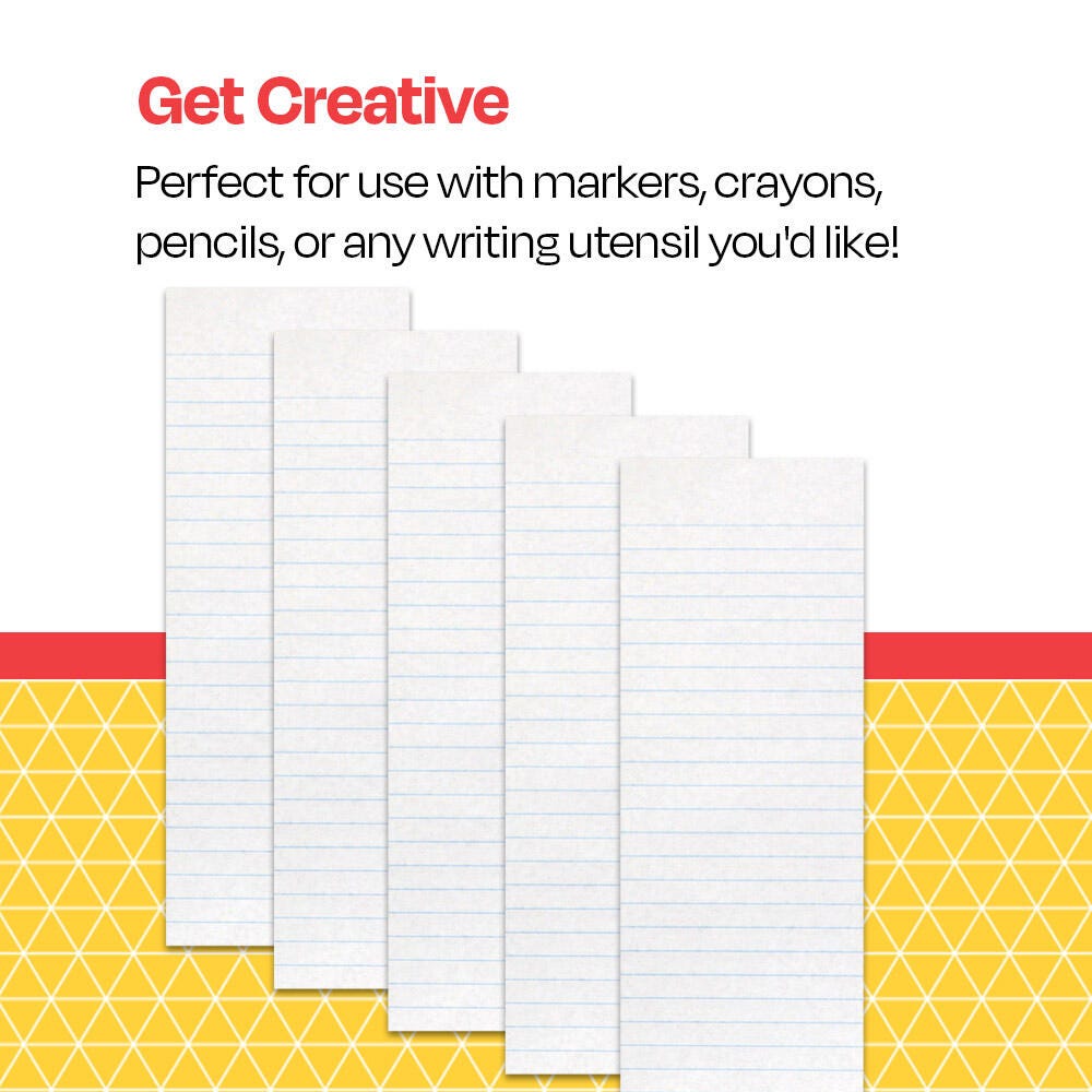 Thin, ruled notepaper is perfect for to-do lists, spelling tests, and reminder posts on the bulletin board.