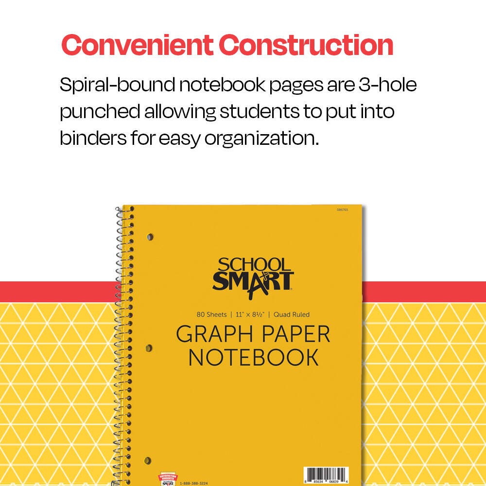 School Smart Quad Ruled Notebook, 8-1/2 x 11 Inches, 80 Sheets