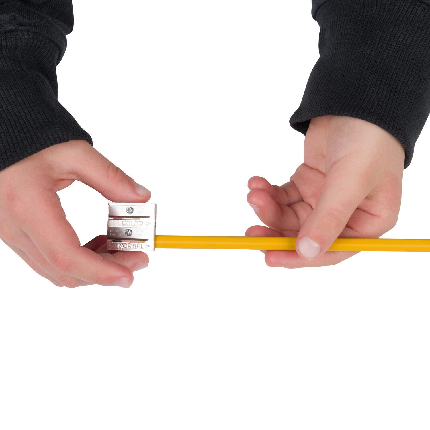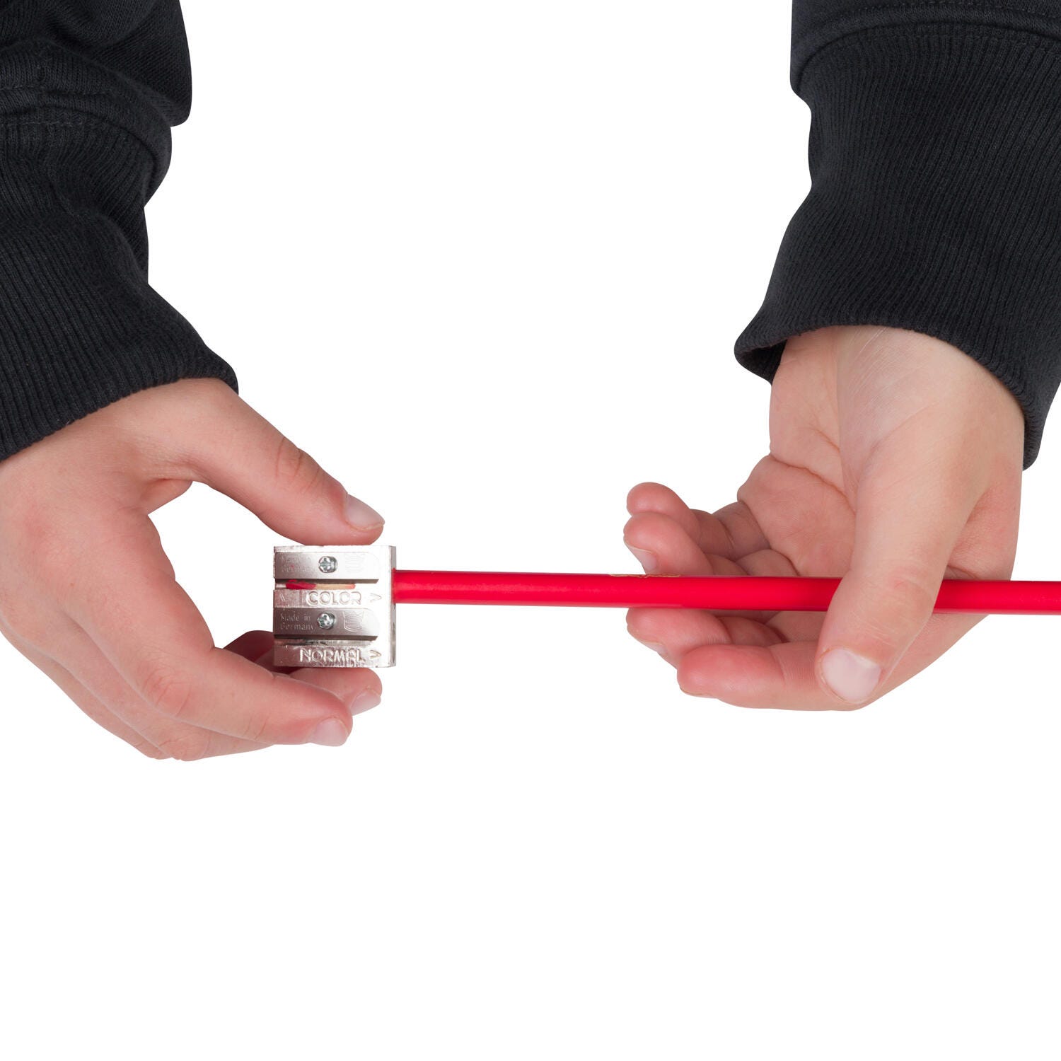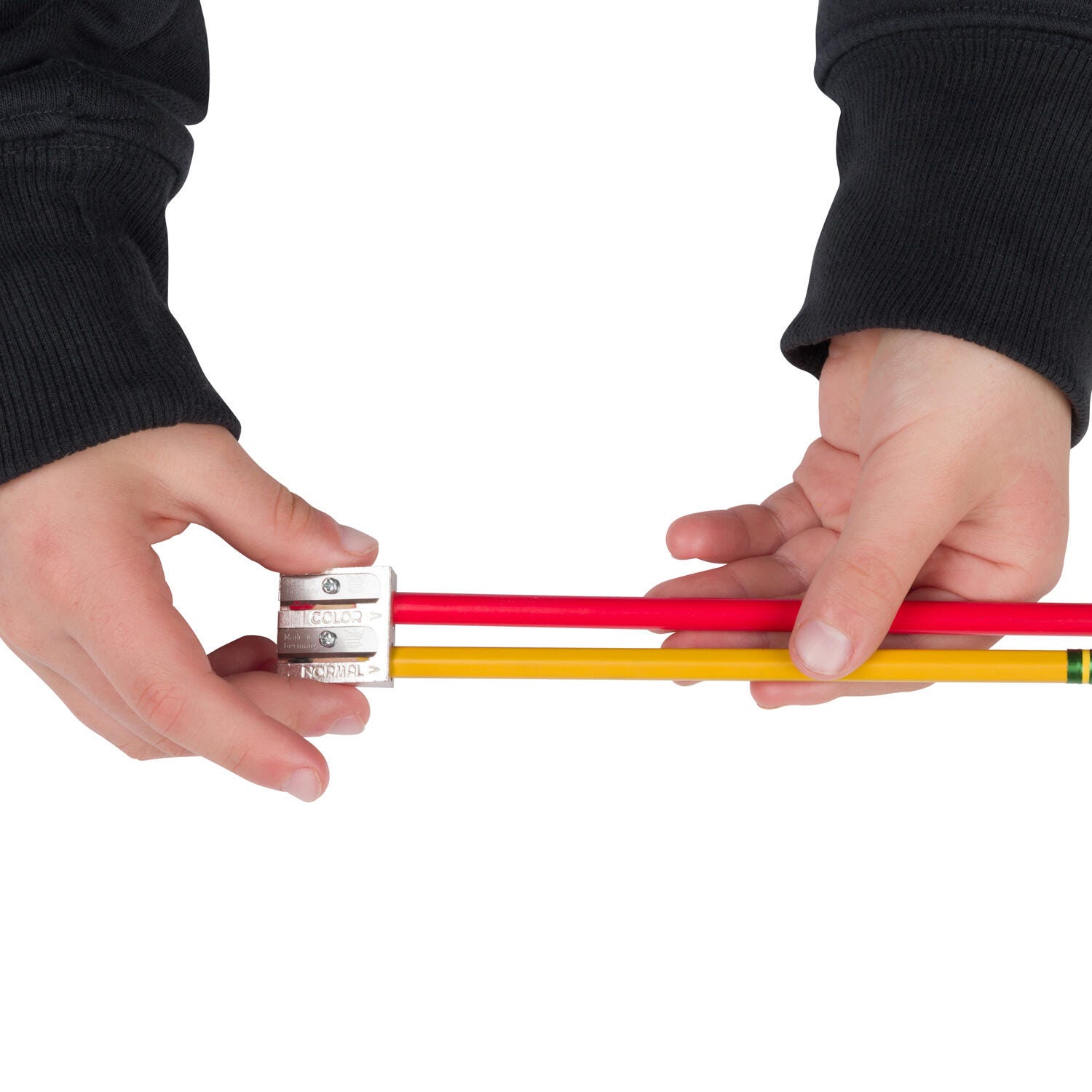 Two holes give pencils a different angle of sharpness