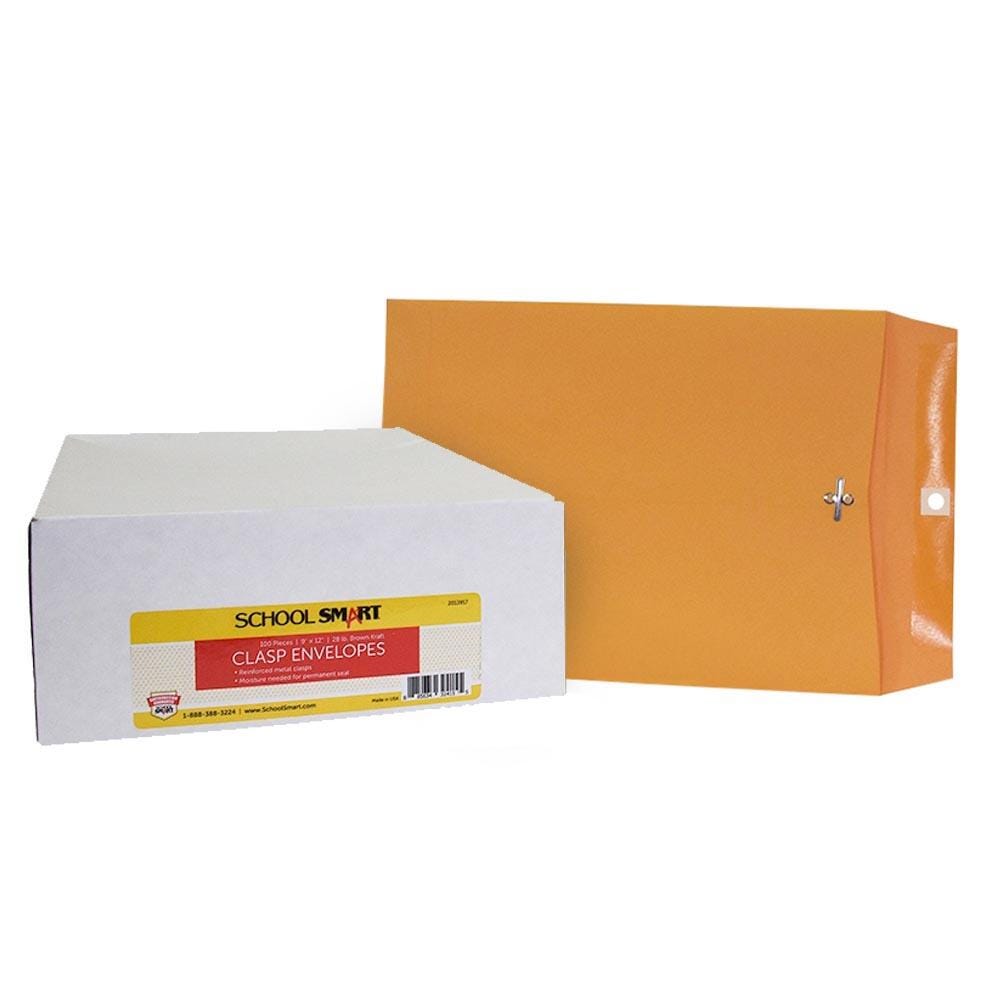 School Smart Kraft Envelopes with Clasp, 9 x 12 Inches, Pack of 100