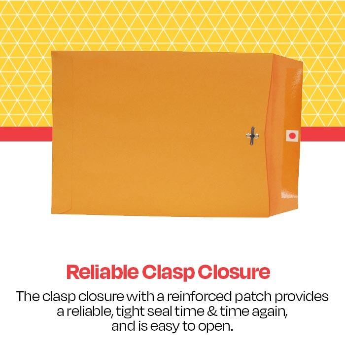 Clasp closure provides reliable, tight seal yet is easy to open than splitting open seal envelopes