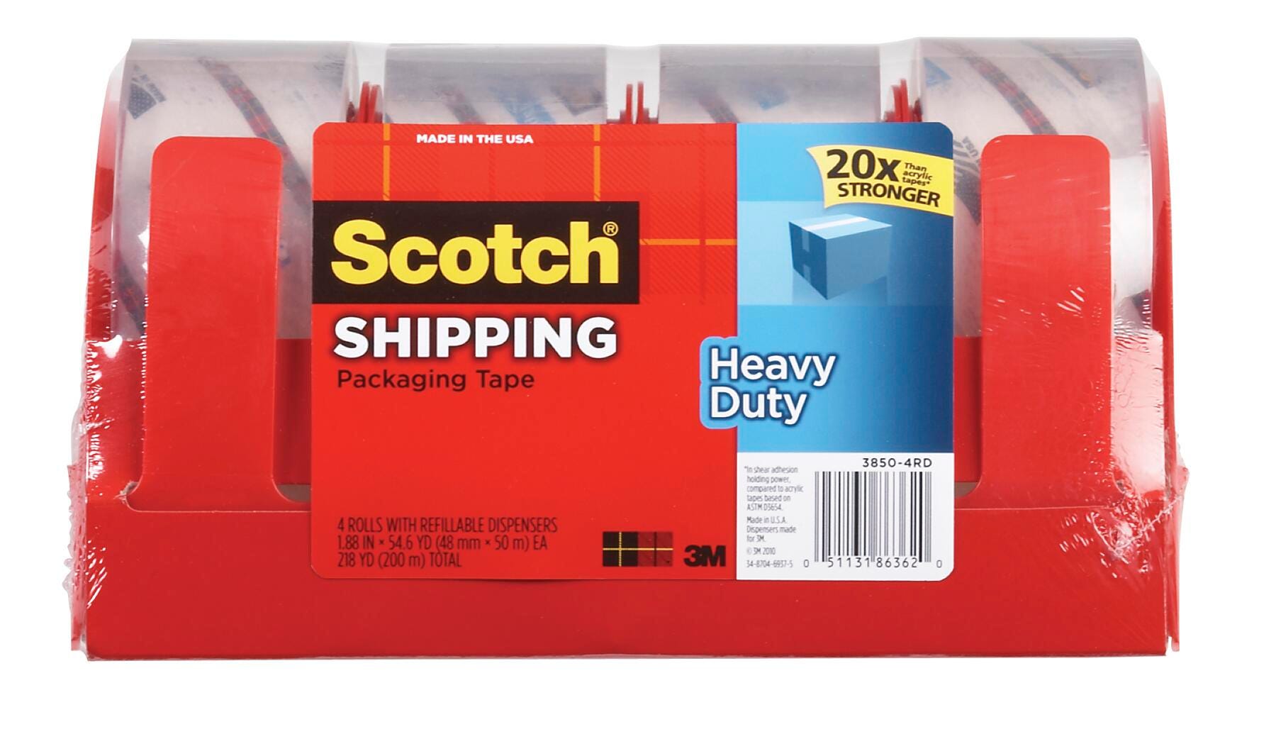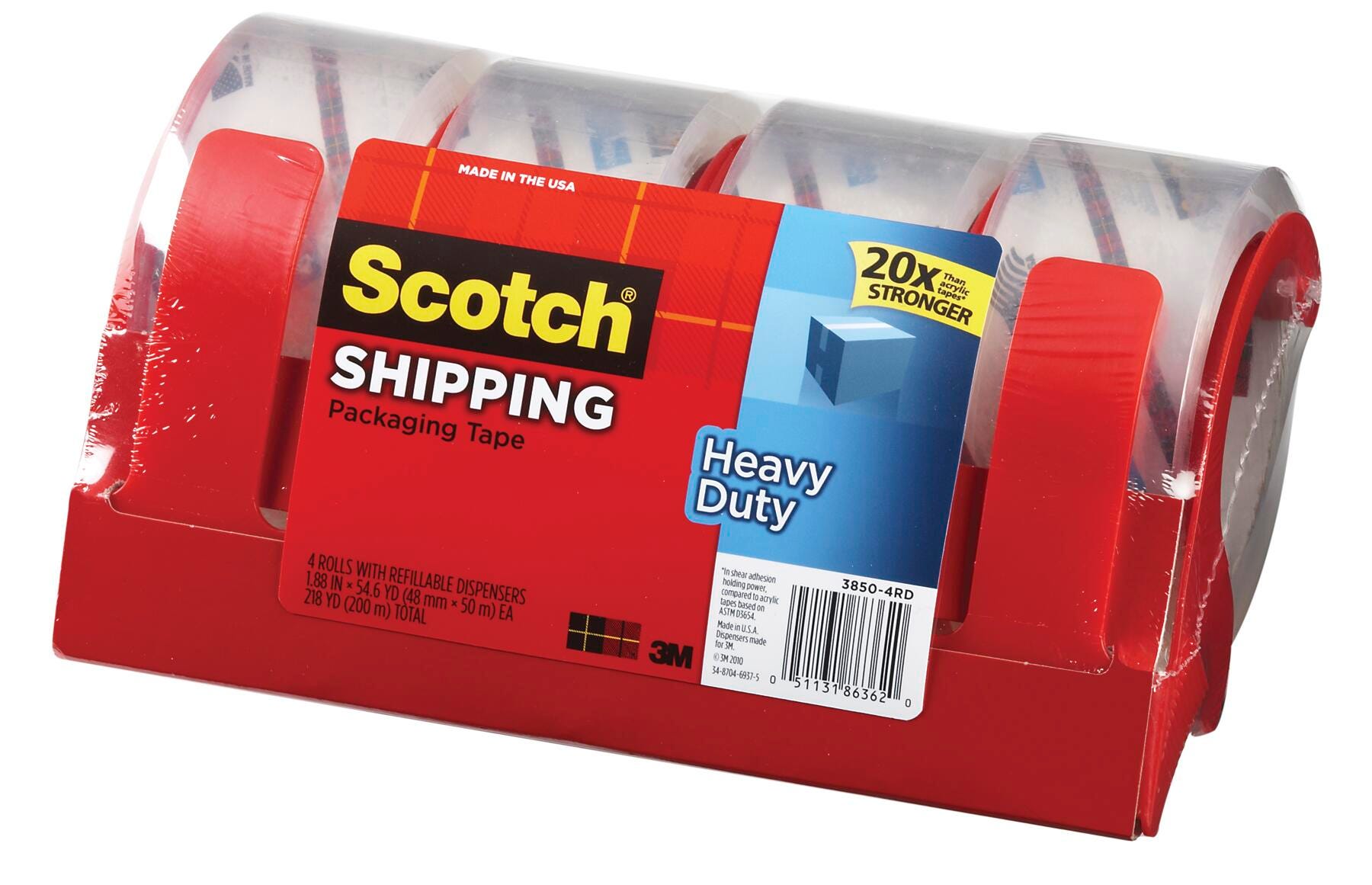 Scotch Heavy Duty Shipping Packaging Tape with Dispenser, 1.88 Inches x 54.6 Yards, Clear, Pack of 4
