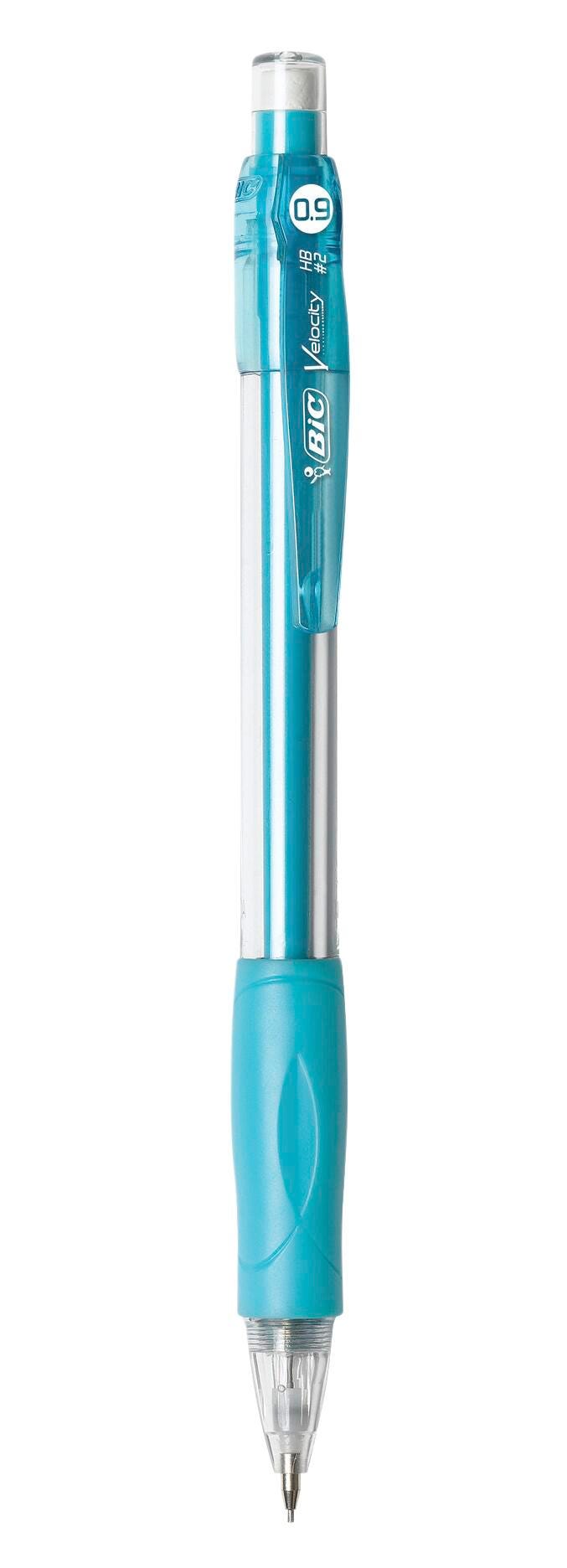 Description The BIC Velocity Mechanical Pencil delivers a comfortable and smooth writing experience, perfect for any task in the classroom, office, or home. The mechanical pencils feature a slim, translucent barrel, a cushioned grip, and an eraser. They do away with the hassle of sharpening and advance lead with a simple press of the eraser end. The pencil has 0.9mm, No. 2 lead that offers bold lines and is exceptionally durable. These latex-free pencils come with three #2 leads and are sold in a pack of 12.Features Sold as a Pack of 12 Durable, high-quality mechanical pencil with sleek and stylish look Features a smooth, opaque rubber grip for comfort High-quality eraser end is covered with a cap to keep the eraser strong and clean Sliding sleeve over the tip prevents the lead from breaking