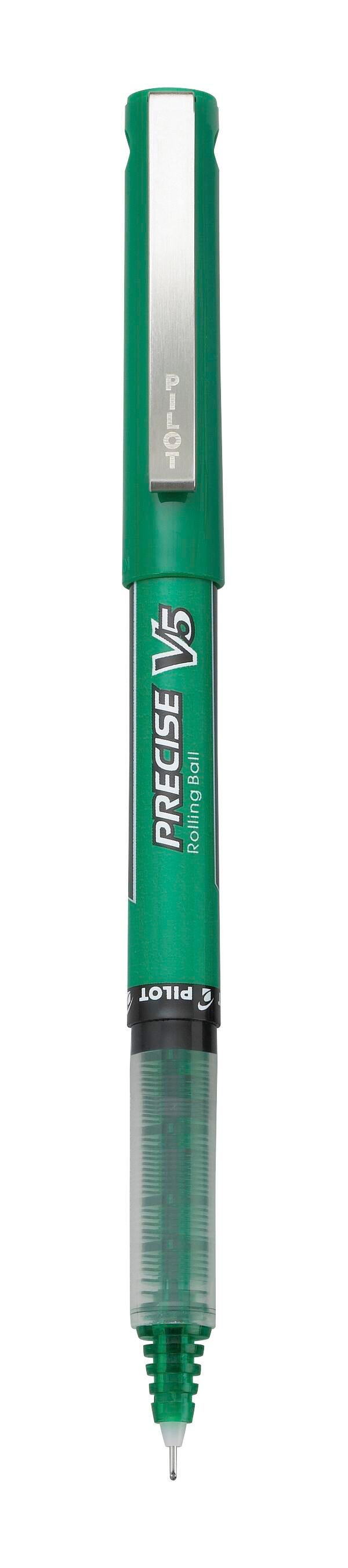 Pilot Precise V5 Premium Rolling Ball Stick Pens, Extra Fine Point, Green Ink, Pack of 12