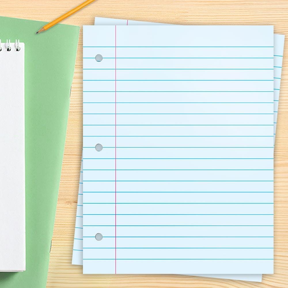 100 Sheets of Hole-Punched Loose Leaf Paper