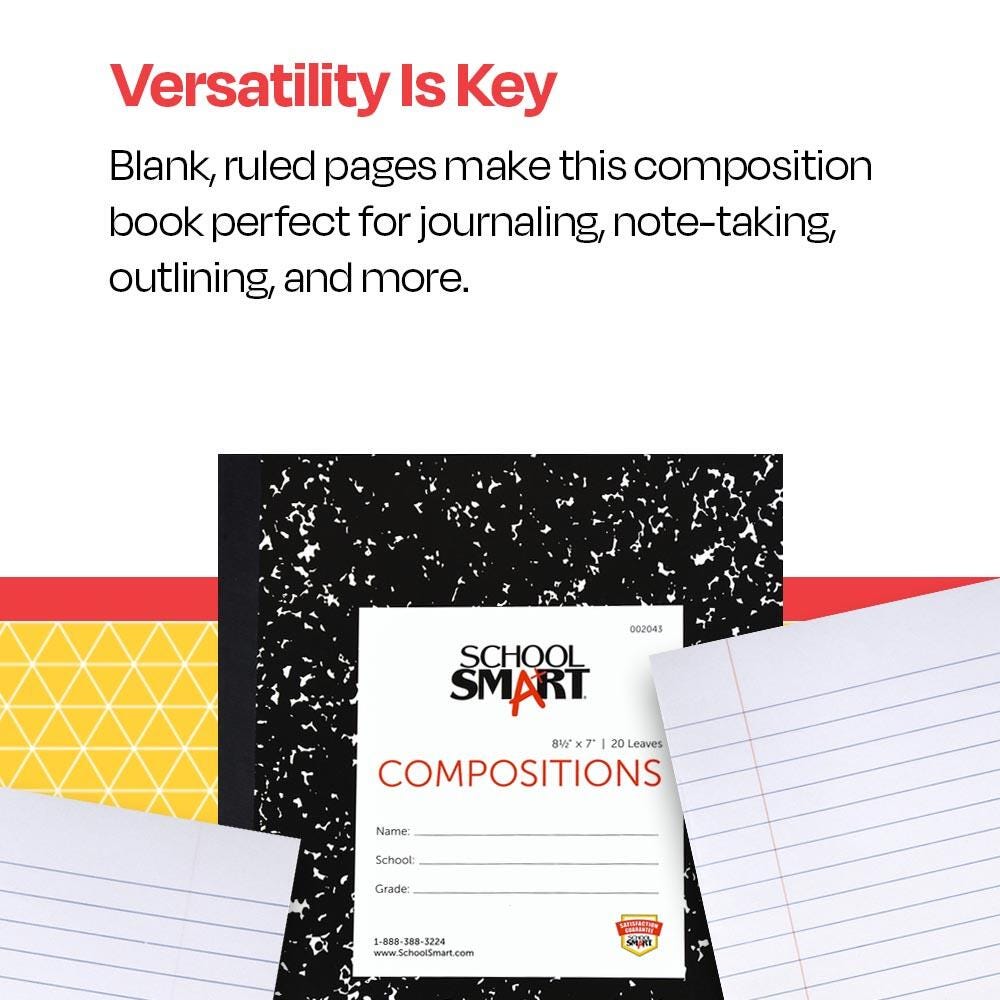 Whether for classwork or creative brainstorming, this School Smart composition book is perfect! A necessity for back to school, recording daily goals, and more.