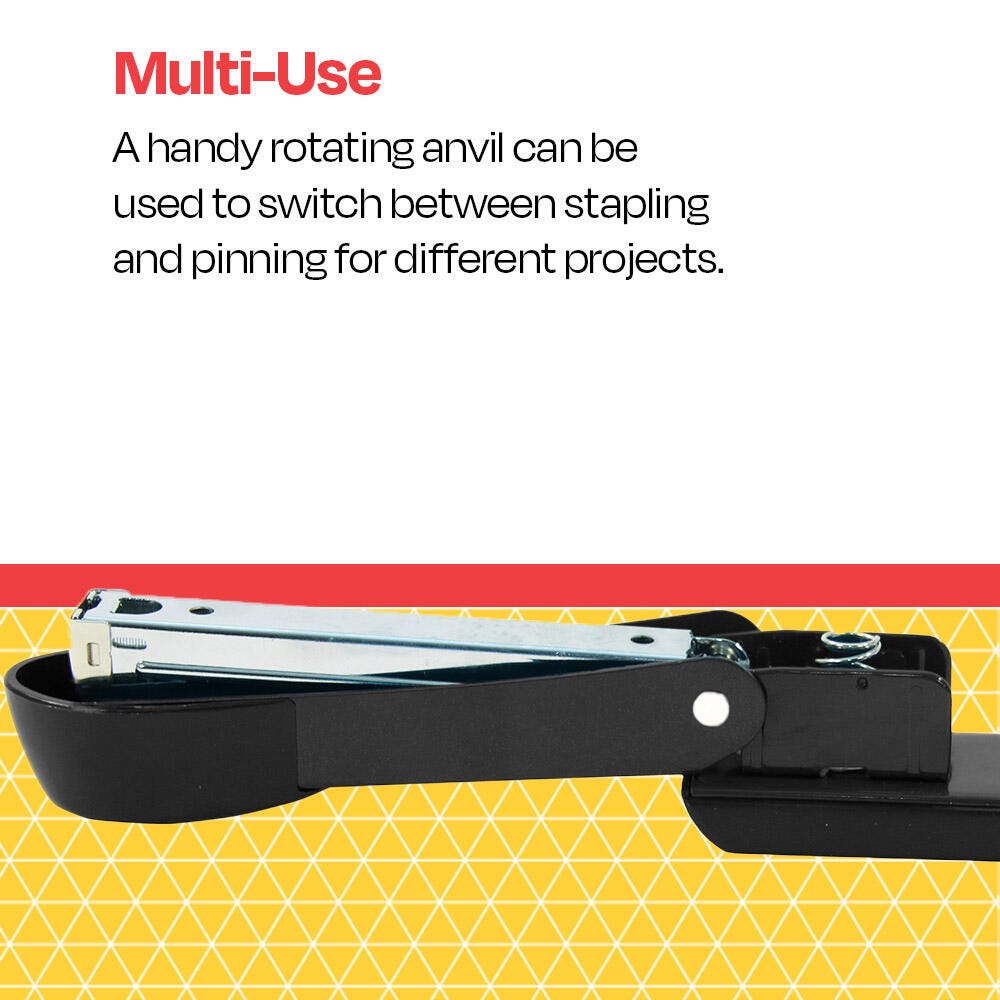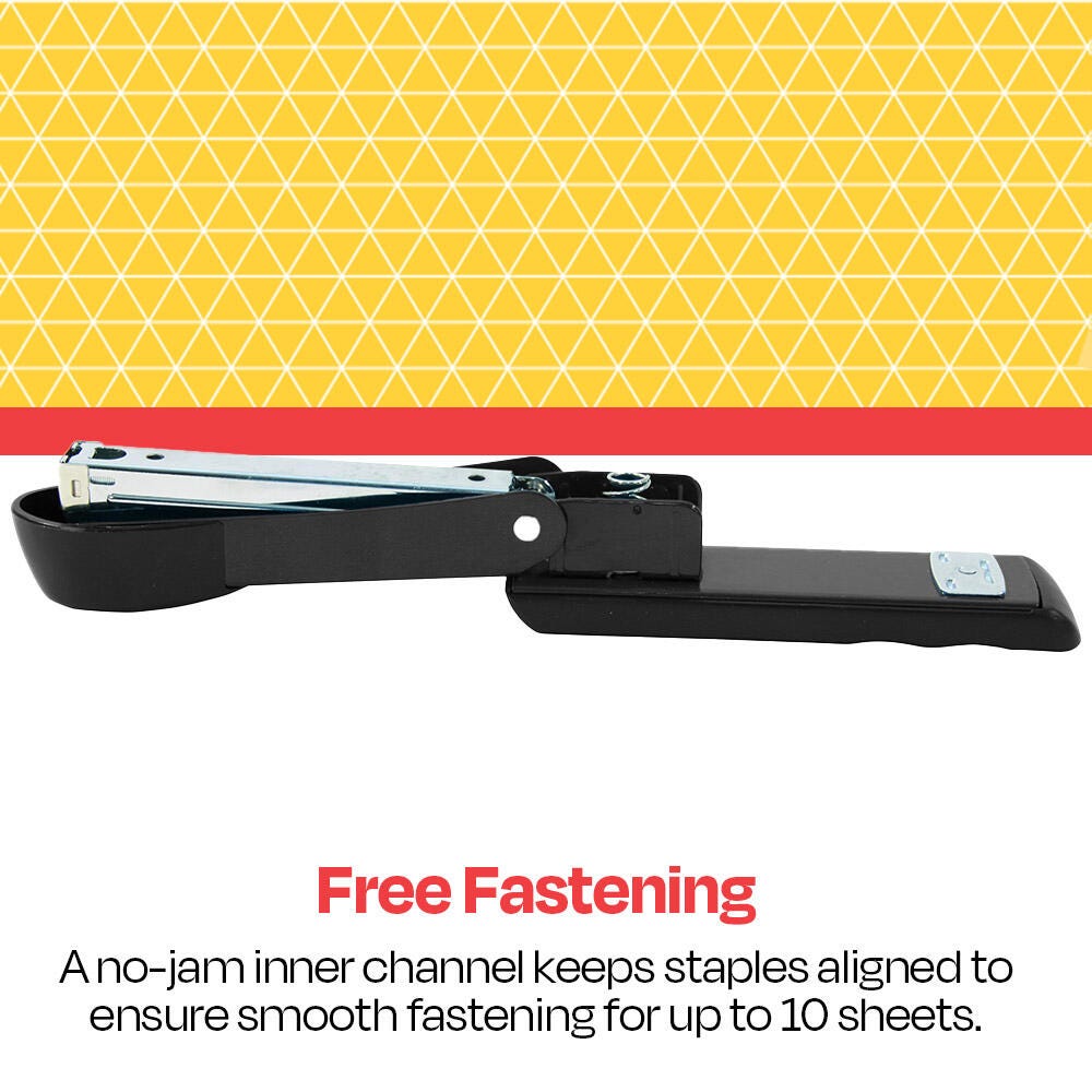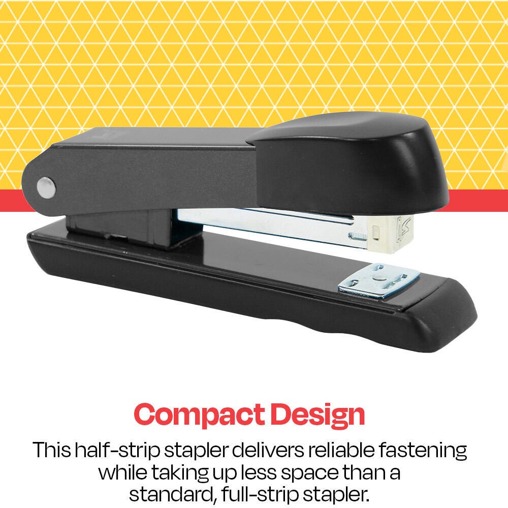 Experience no-jam stapling in the classroom or office! This half-strip stapler offers reliable fastening power in a smaller package.