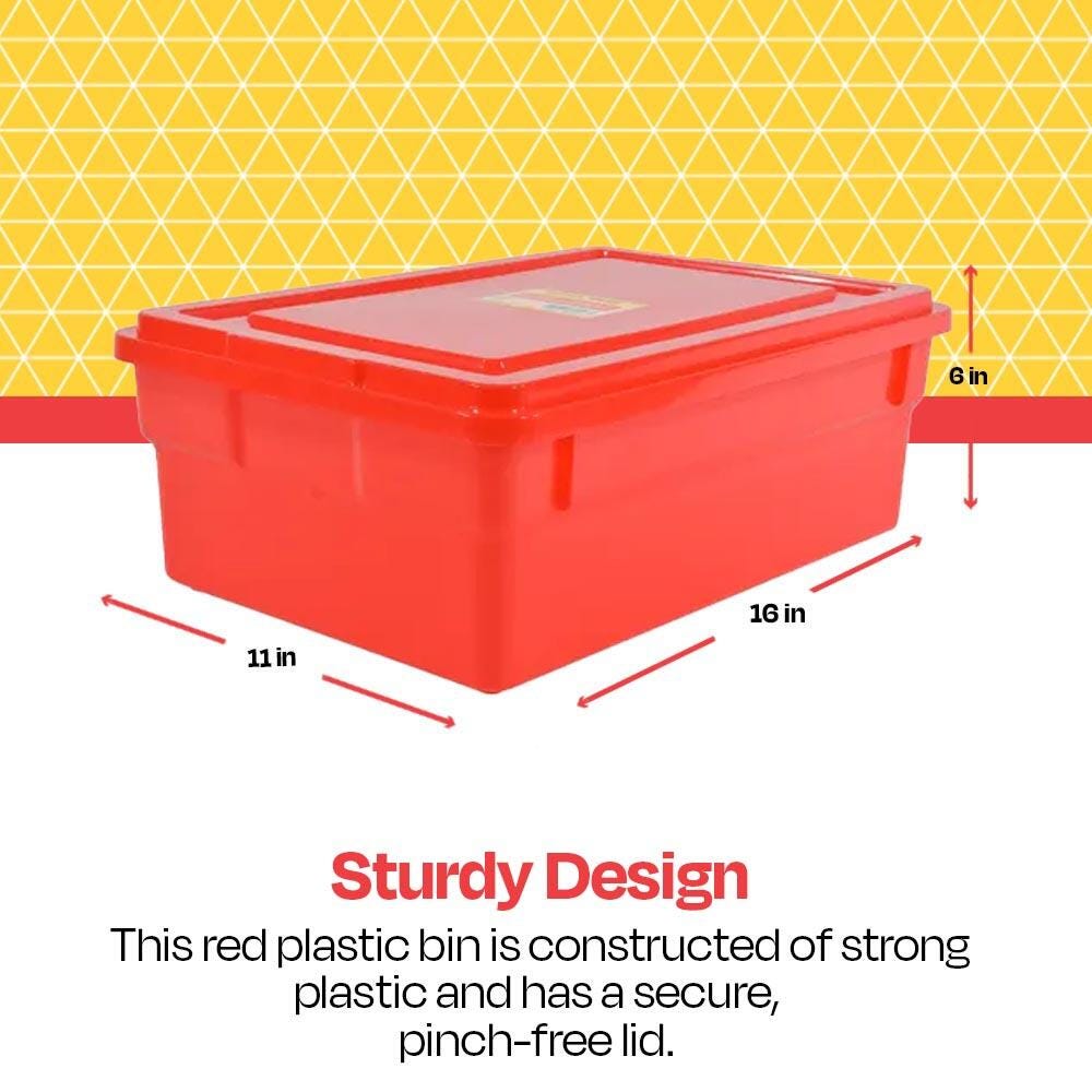 School Smart Medium Storage Bin with Lid, 11 x 16 x 6 Inches, Red