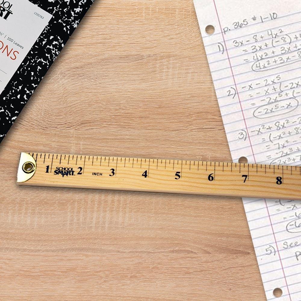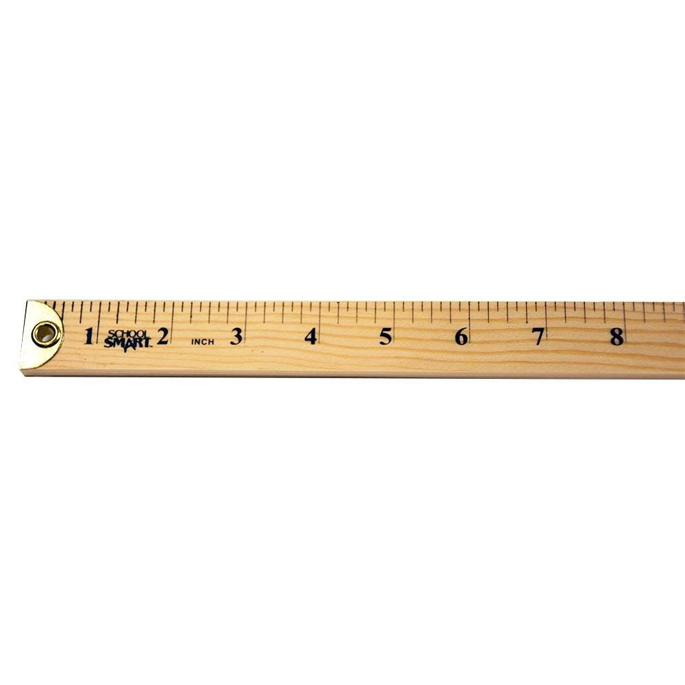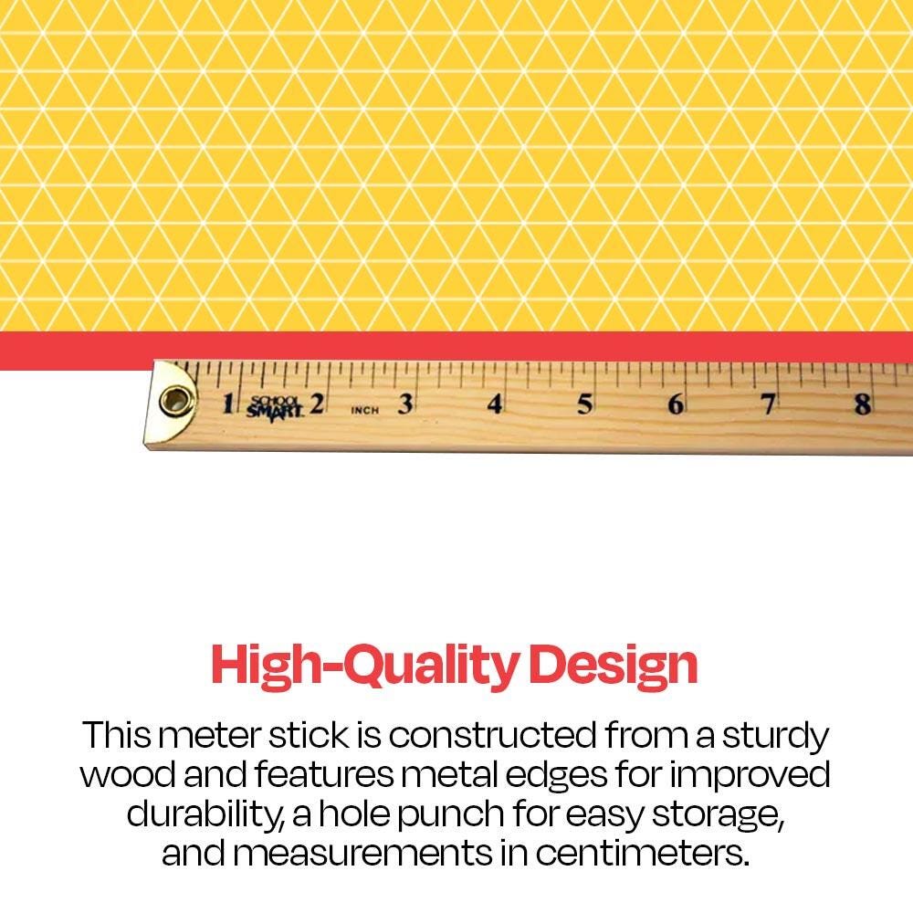 High-quality and durable, the School Smart meter stick is made of hardwood with a multiple-coat, clear lacquer finish and metal ends. The 1 meter measuring stick is scaled in centimeters and also divided in both millimeters and 1/8 inches. Storing is made easy with a hole for hanging. The hardwood meter stick with metal ends measures 1 meter long and 1 inch wide.