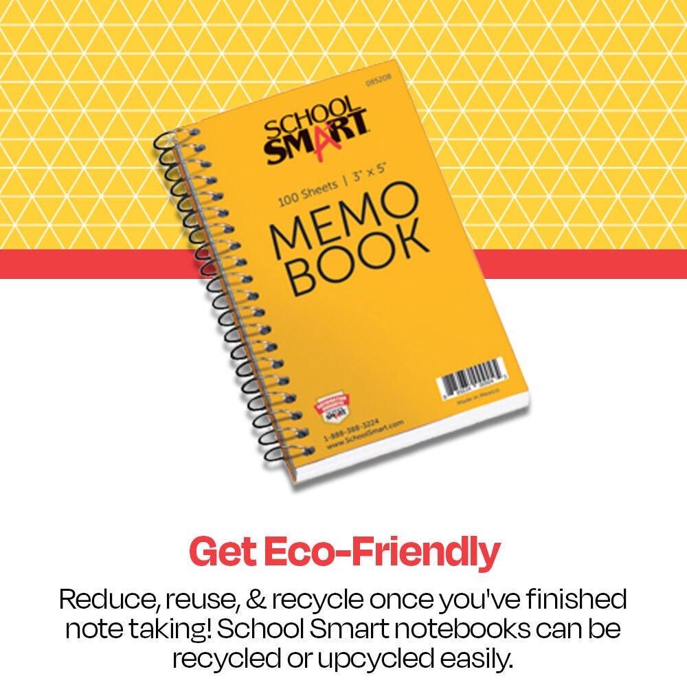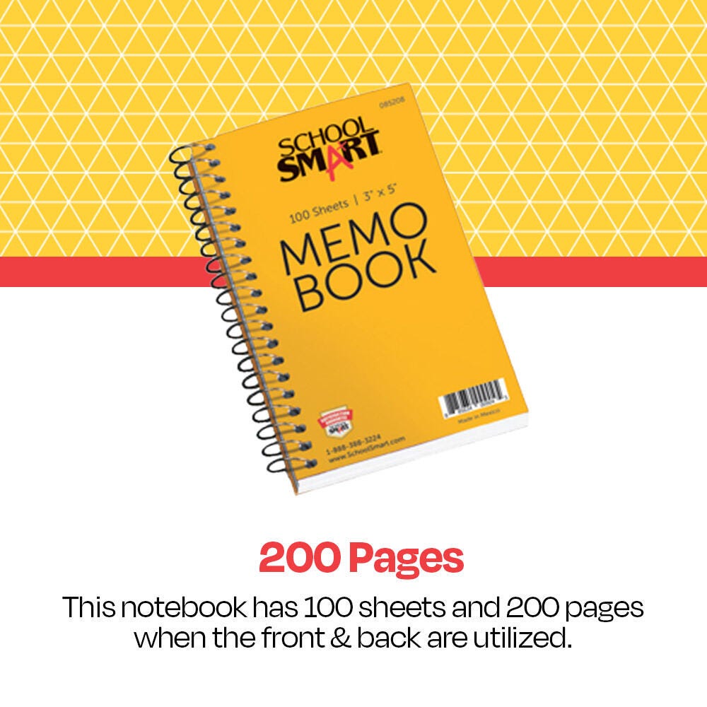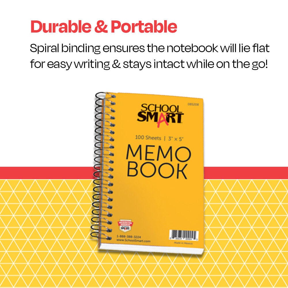 School Smart Side Opening Memo Notebook, 3 x 5 Inches, 100 Sheets