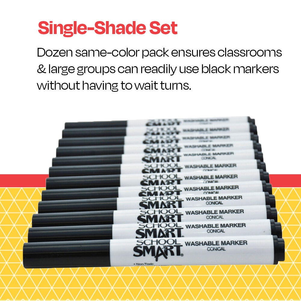 • School Smart Washable Art Markers, Conical Tip, Black, Pack of 12