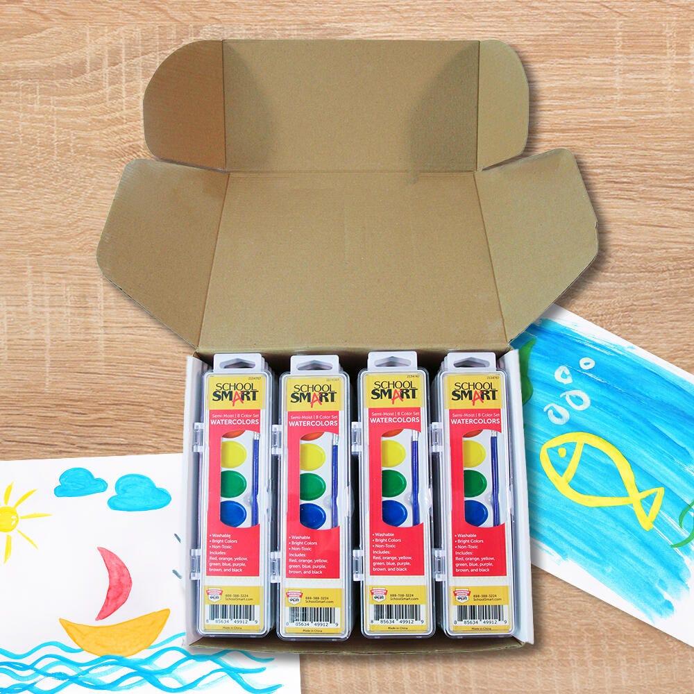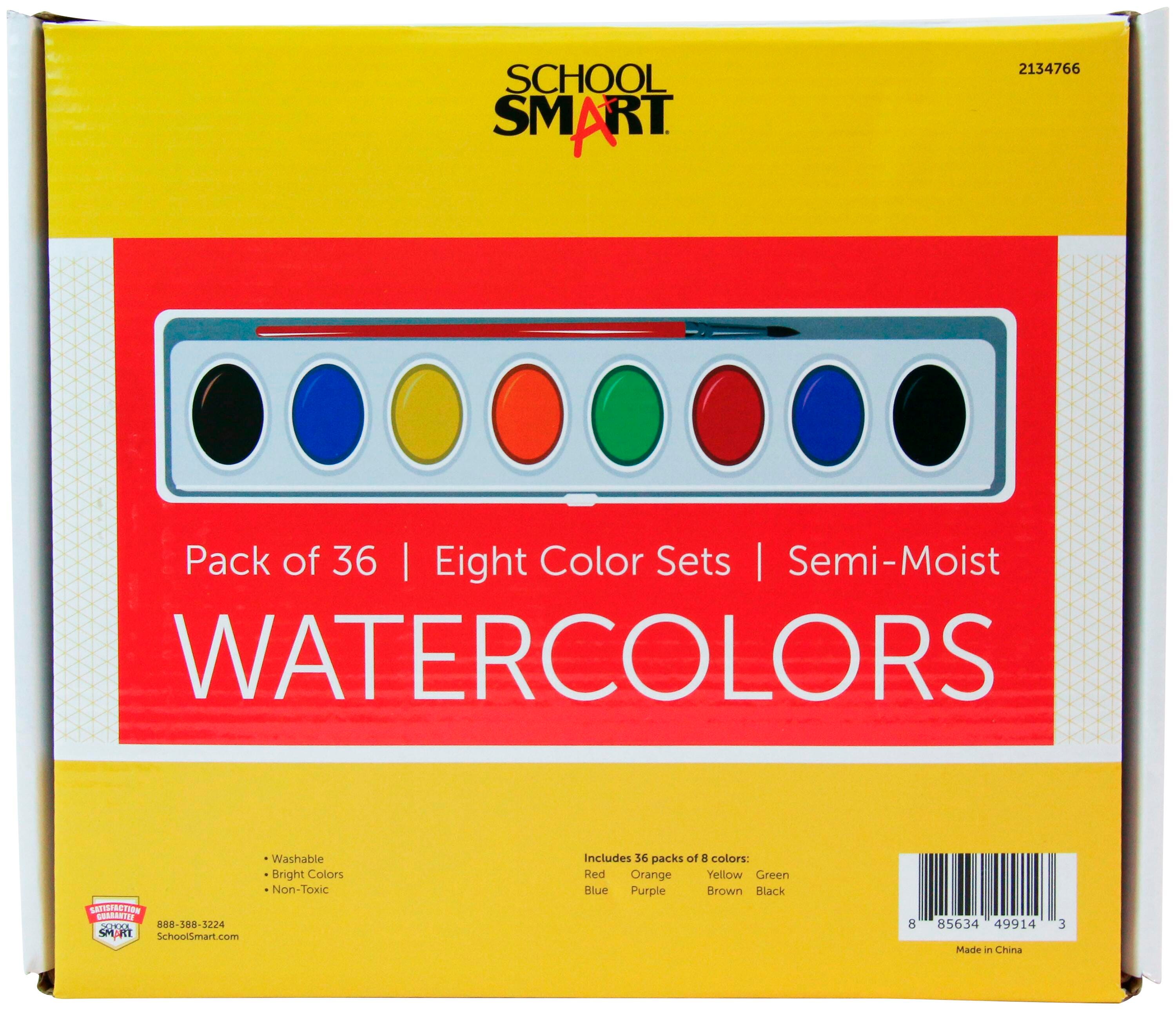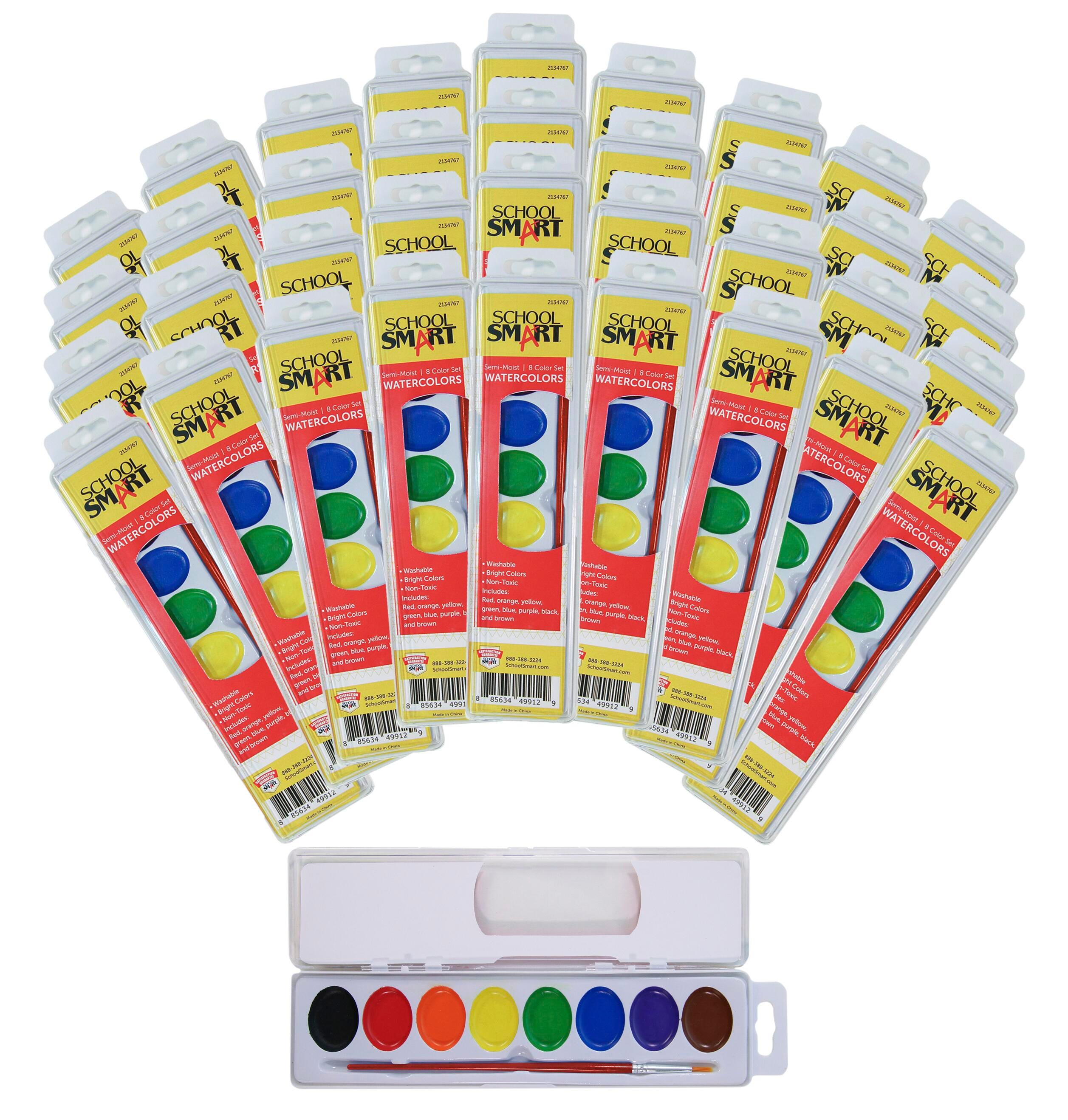 School Smart Watercolor Paint Classroom Pack, Assorted 8 Color Pans, Set of 36