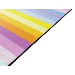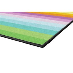 Add a pop of color to your educational space with this Vertical Rainbow Stripes classroom carpet! This versatile area rug is designed with a pastel rainbow palate to brighten up your space. This rectangular carpet is available in several sizes.