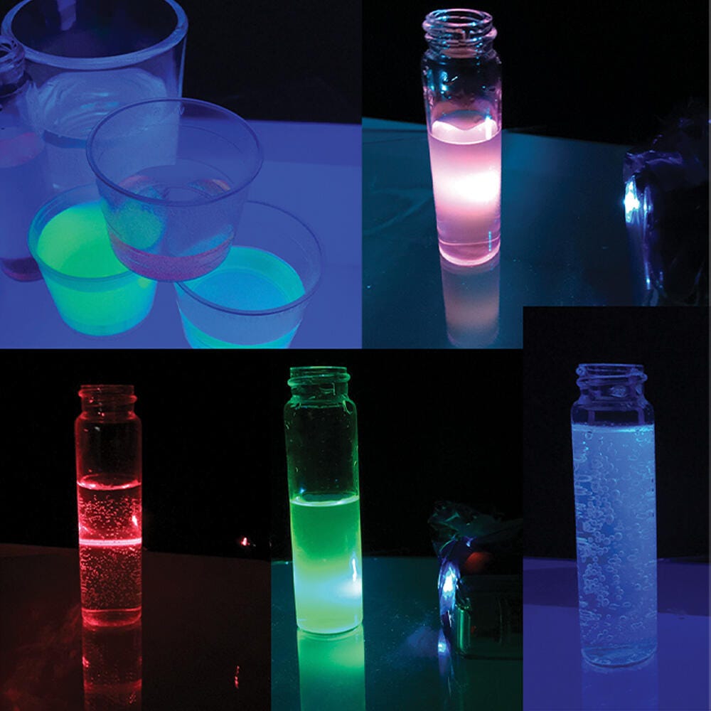 Investigate how light is used in technology products. Activity has deep content and unique materials so users can explore science concepts using STEM methodology. Designed for use by an individual student or small group of students, includes one model experiment and printed instruction sheets. Experiments include:Understanding Why Fluorescent Dyes Glow(GUIDED - MODEL EXPERIMENT)Provides students with experience in understanding the visible spectrum, light energy, and fluorescene.Using UV Light to Hunt for Fluorescent Objects(GOING FURTHER ACTIVITY)Students engage in OPEN inquiry-driven independent explorations of various types of fluorescent materials.