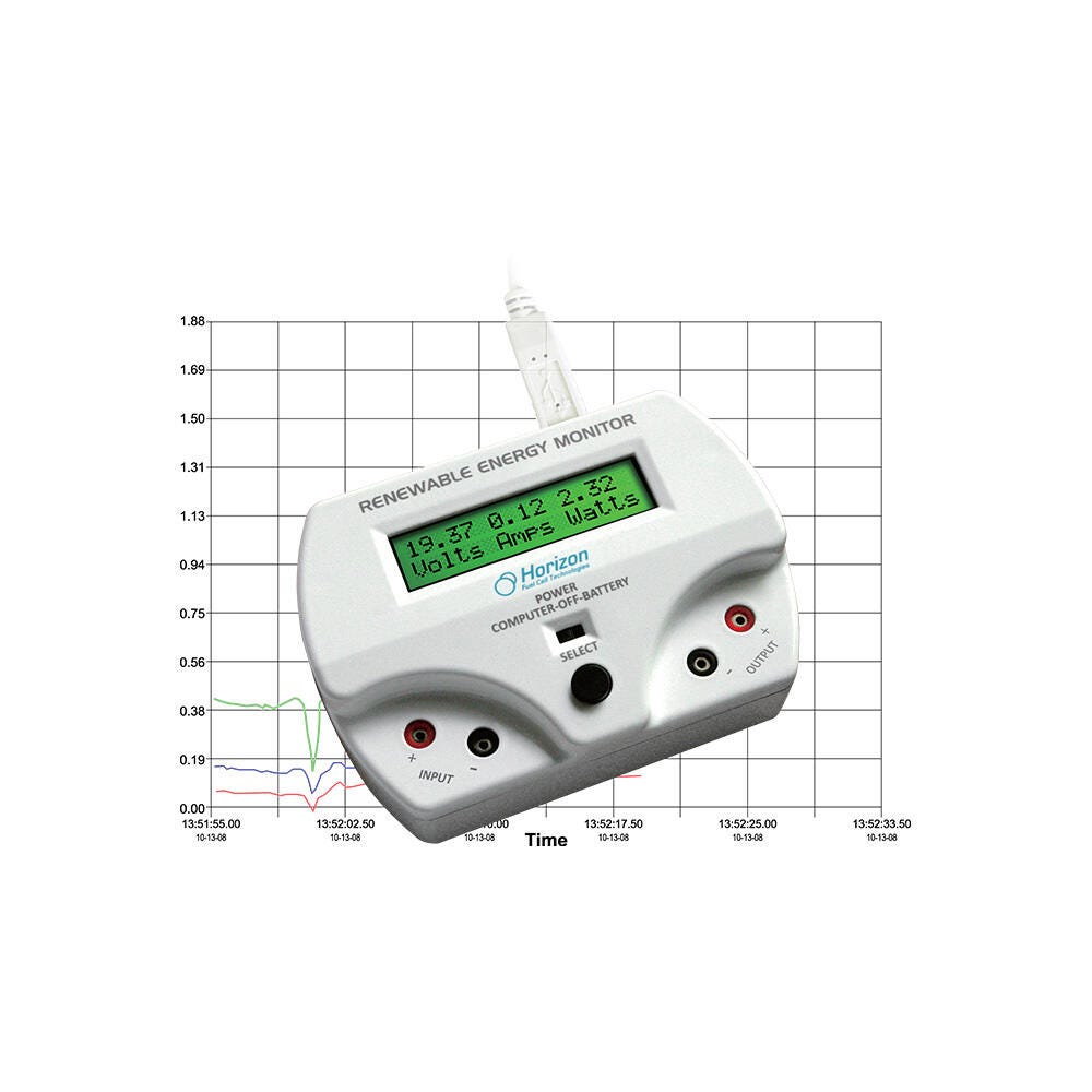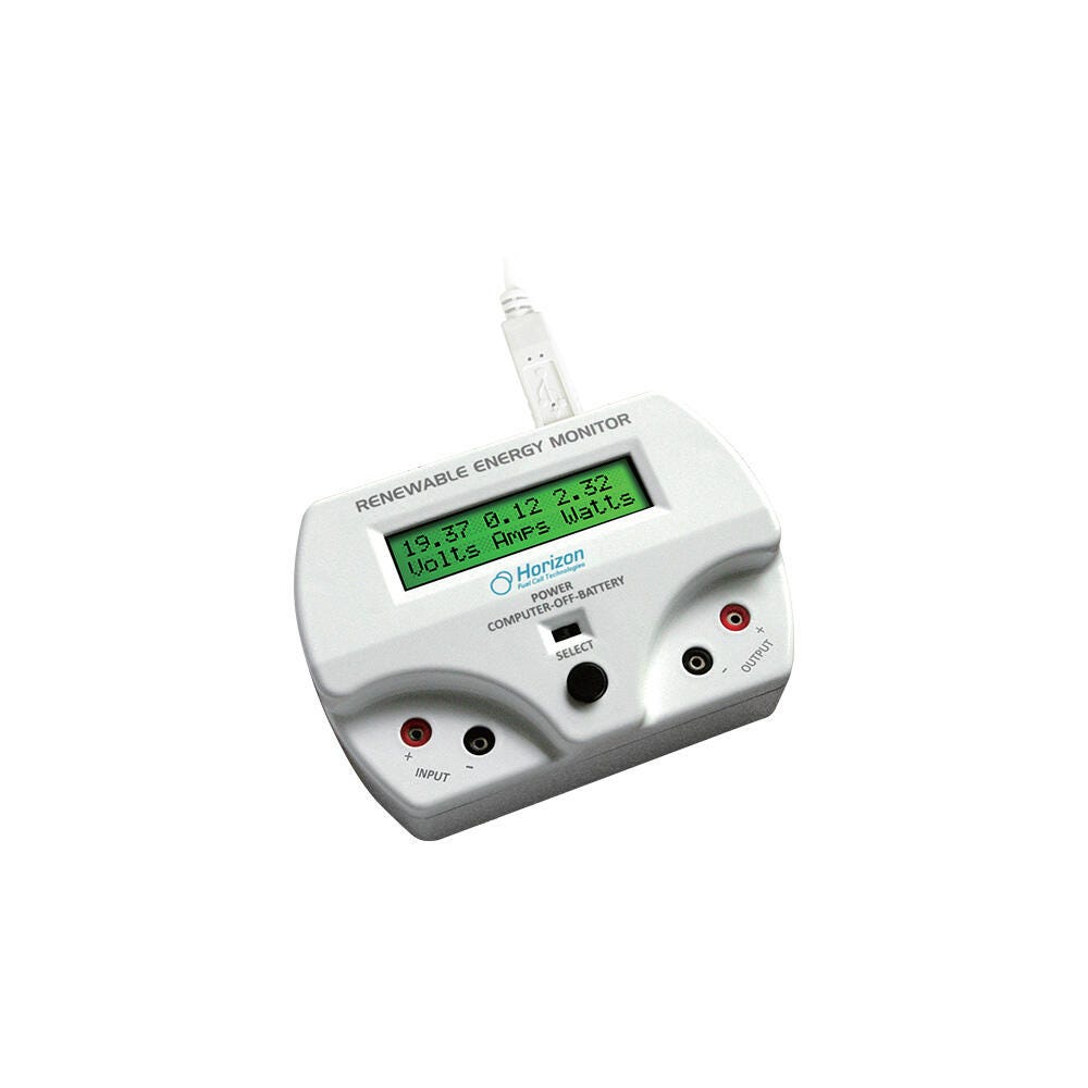 Energy Monitor (data Logging Hardware) with LCD Readout Screen, LCD Screen Shows: Voltage (v,mv), Current (a, Ma), Power (w, Mw), Rpm Speed, Resistance (ohm), Energy(joules), USB Cable - 1 Meter Length, CD-Rom with Horizon Data Acquisition Software, CD-Rom with Complete Renewable Energy Curriculum, Flexible 2mm Banana Connecting Leads for Connecting To Horizon Devices
