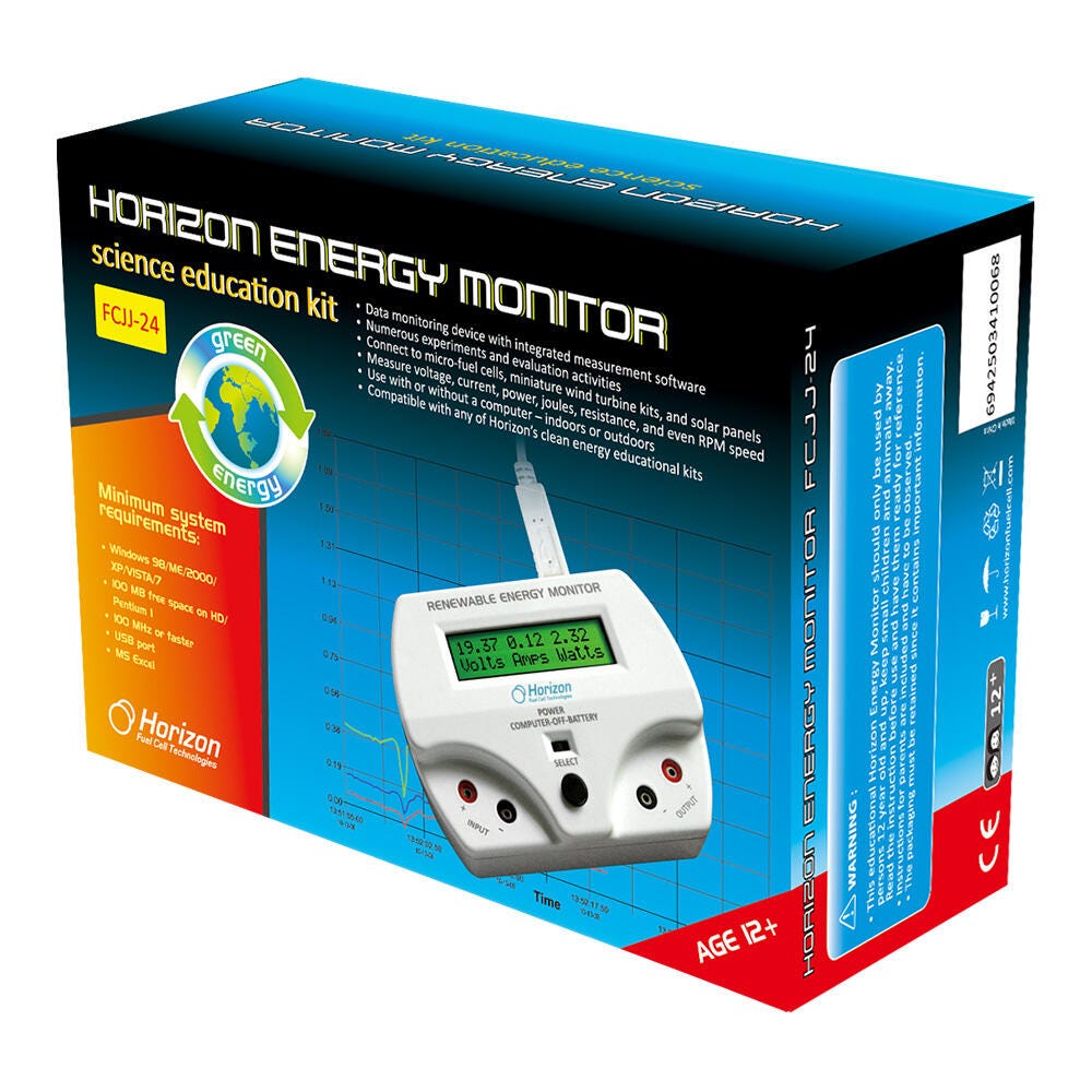 Horizon Energy Monitor featuring measurement software for graphical display of performance characteristics on your PC is an educational evaluation monitoring device. Energy monitor compatible with any of Horizon's science education kits features a 2 line LCD screen that lets you view the measurements you cycle through at the push of a button. Renewable energy monitor designed as an accessory for all kits is useful to carry out experiments in the manual. Energy monitor that can be used indoor or outdoor, with or without a computer offers an immediate and graphical way to record the data directly, without formulas and calculations. It is ideal to quantify voltage, current, power, joules, resistance as well as RPM speed in wide range of experiments and evaluation activities of hydrogen fuel cells, miniature wind turbine kits and solar panels. Monitor that lets you export all data to Excel or CSV format is compatible on Windows OS and Mac using Windows Parallel or Boot Camp. It allows recording a video of your experiments for playback and review.