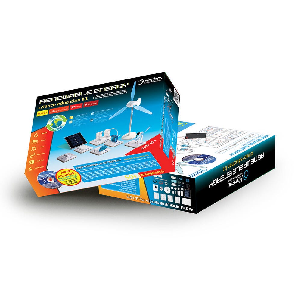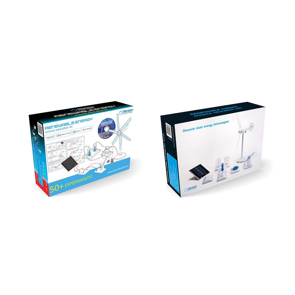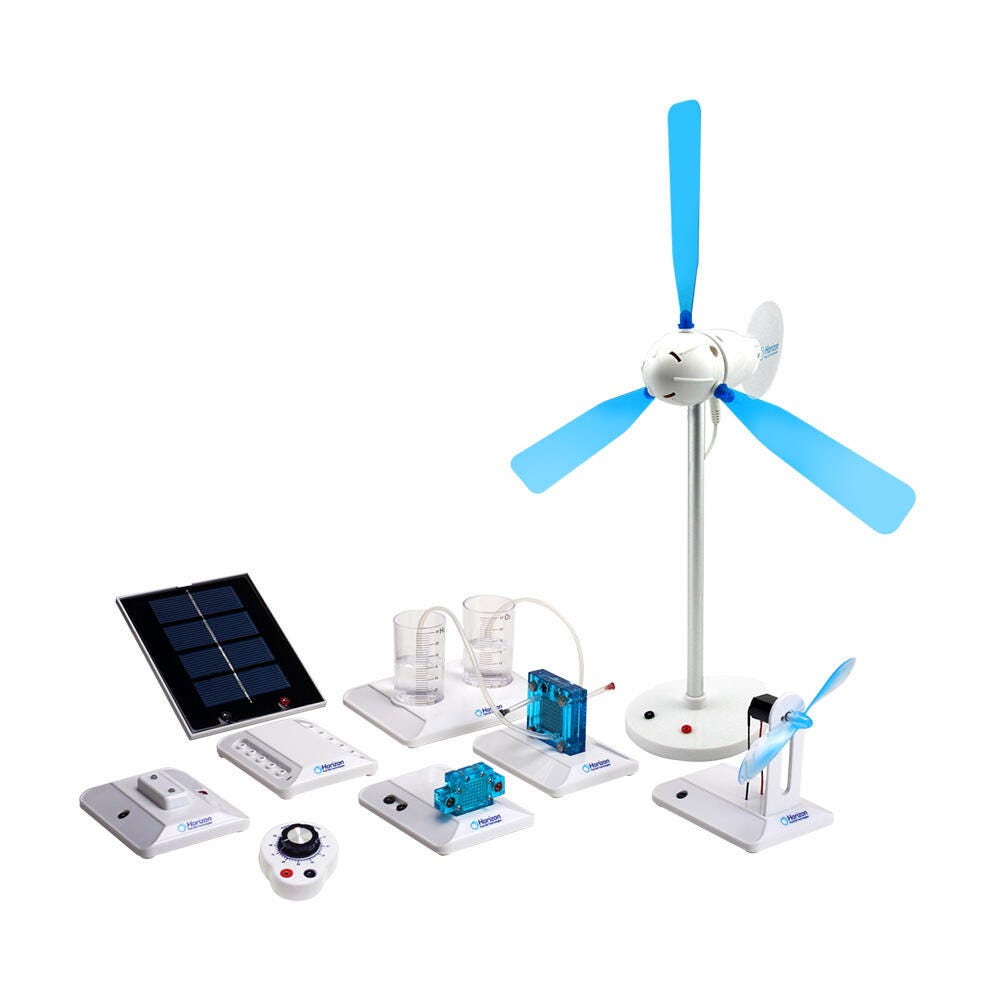 Horizon Renewable Energy Education Set ideal for grades 6 - 12 is designed to illustrate the workings of a complete clean energy technology system on a miniature scale. Modular experiment set containing small-scale wind turbine, solar cell, fuel cells as well as loads includes enough hardware, software and curriculum content for 4 - 5 students to share and to run 40 hrs of classroom activities.Features