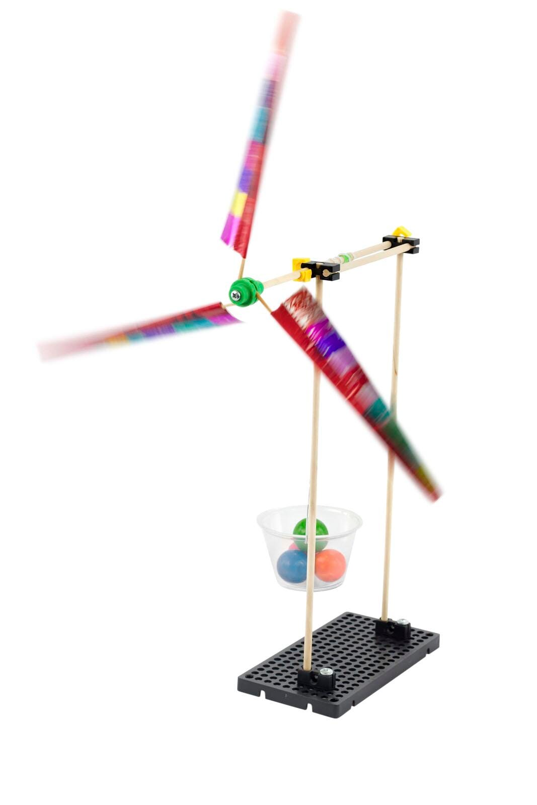 The TeacherGeek Wind Lift Activity Pack is renewable energy made awesome for kids! In this activity students will utilize the power of the wind, engineering their very own working turbine to lift a heavy load or raise their bucket as quickly as possible. TeacherGeek makes it a breeze to modify and redesign turbines, meaning kids really get to see how changing different aspects of the blades affects the turbine's performance. With kids primarily modifying the blades, the assembled bases can be stored for use year-after-year. Grades 3 – 8+ (different documents for different ages). Some adult assistance is helpful for 3rd-graders. TeacherGeek is not a toy; it’s way better! Kids love making real things, especially when they get to use age-appropriate tools. Kids will need a TeacherGeek Reamer (1 included in each 10-pack), Phillips screwdriver, scissors, tape, and a fan (to create wind).Features