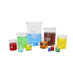 Frey Scientific delivers high-quality glass labware for experiments and research in classrooms and labs. They are excellent for measuring, pouring, and holding liquids. These beakers feature heavy and uniform wall thickness, spouts for pouring, and beaded tops. Each beaker has a capacity of 10mL. This pack contains 12 beakers.Features