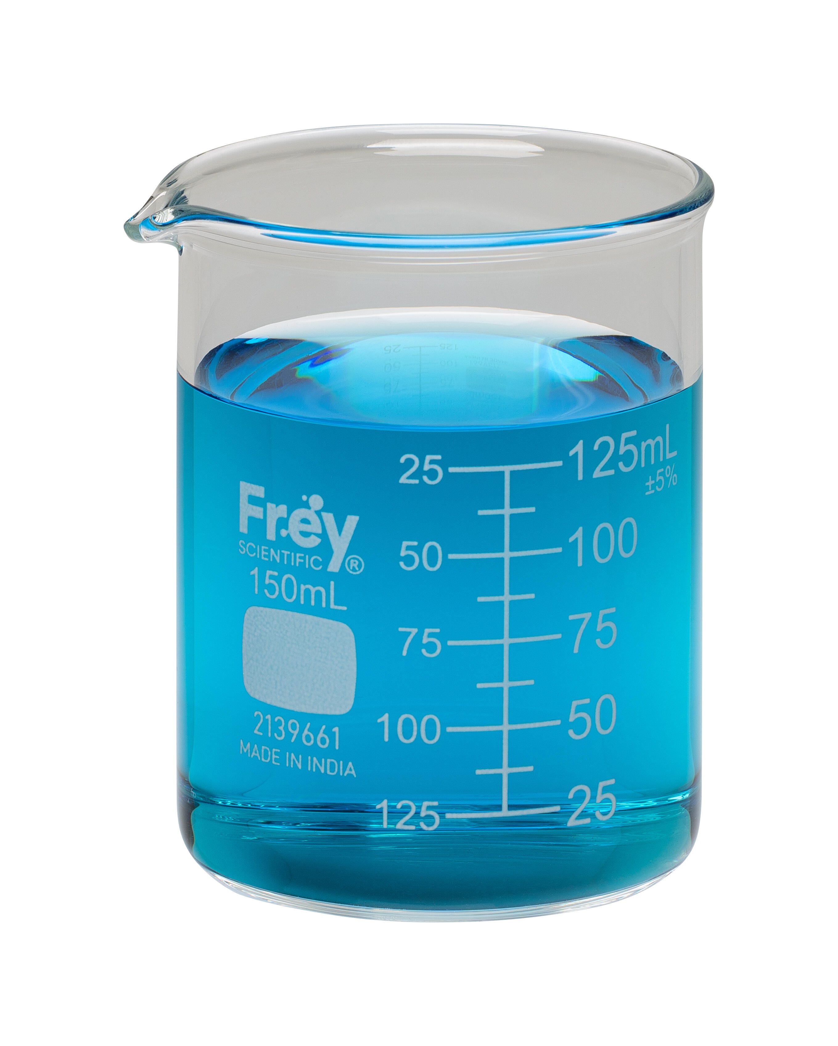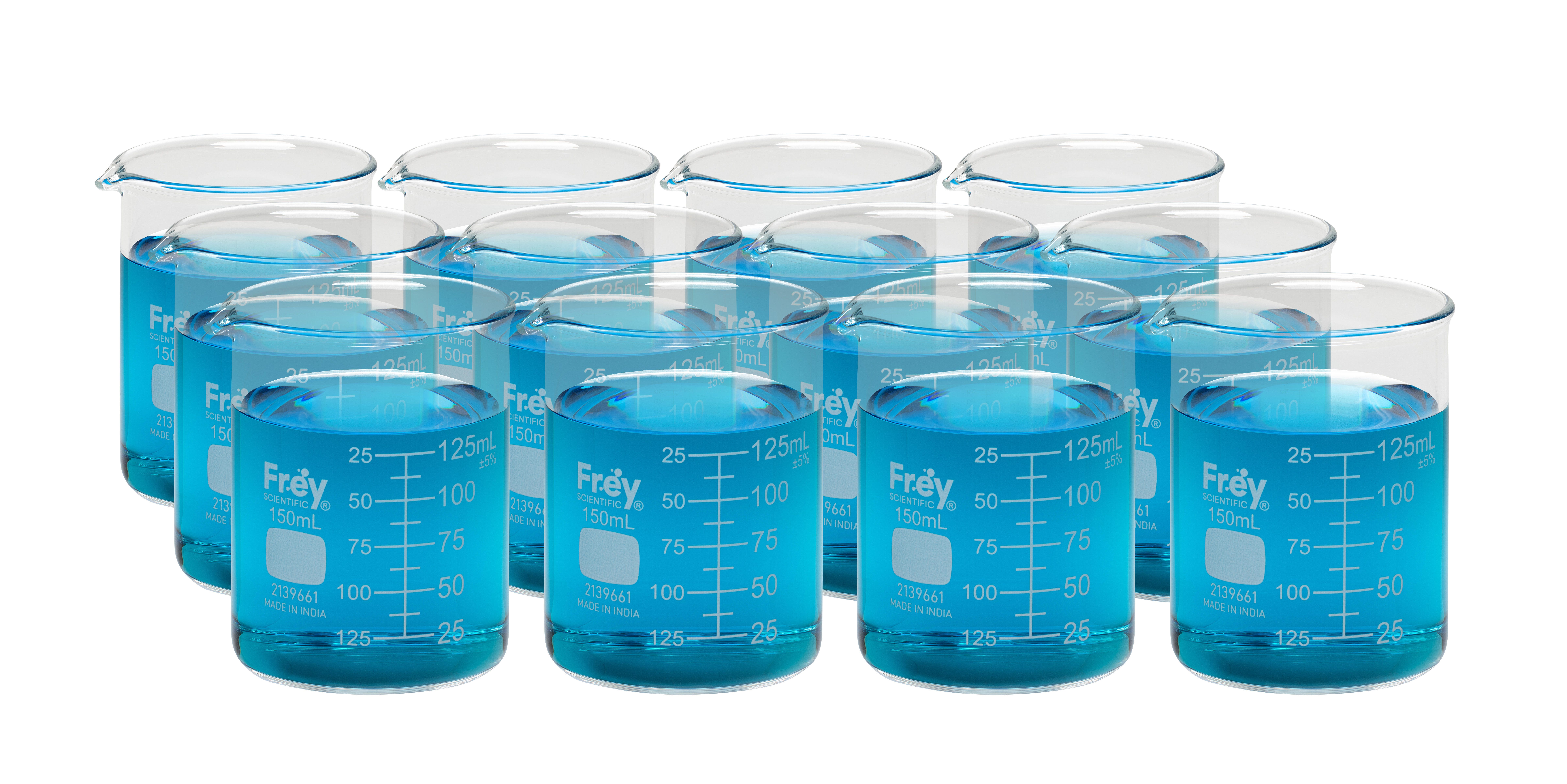 Frey Scientific delivers high-quality glass labware for experiments and research in classrooms and labs. These beakers are excellent for measuring, pouring, and holding liquids. They feature heavy and uniform wall thickness, spouts for pouring, and beaded rims. Each beaker has a capacity of 150 mL and 20 mL graduations. This pack contains 12 beakers.Features