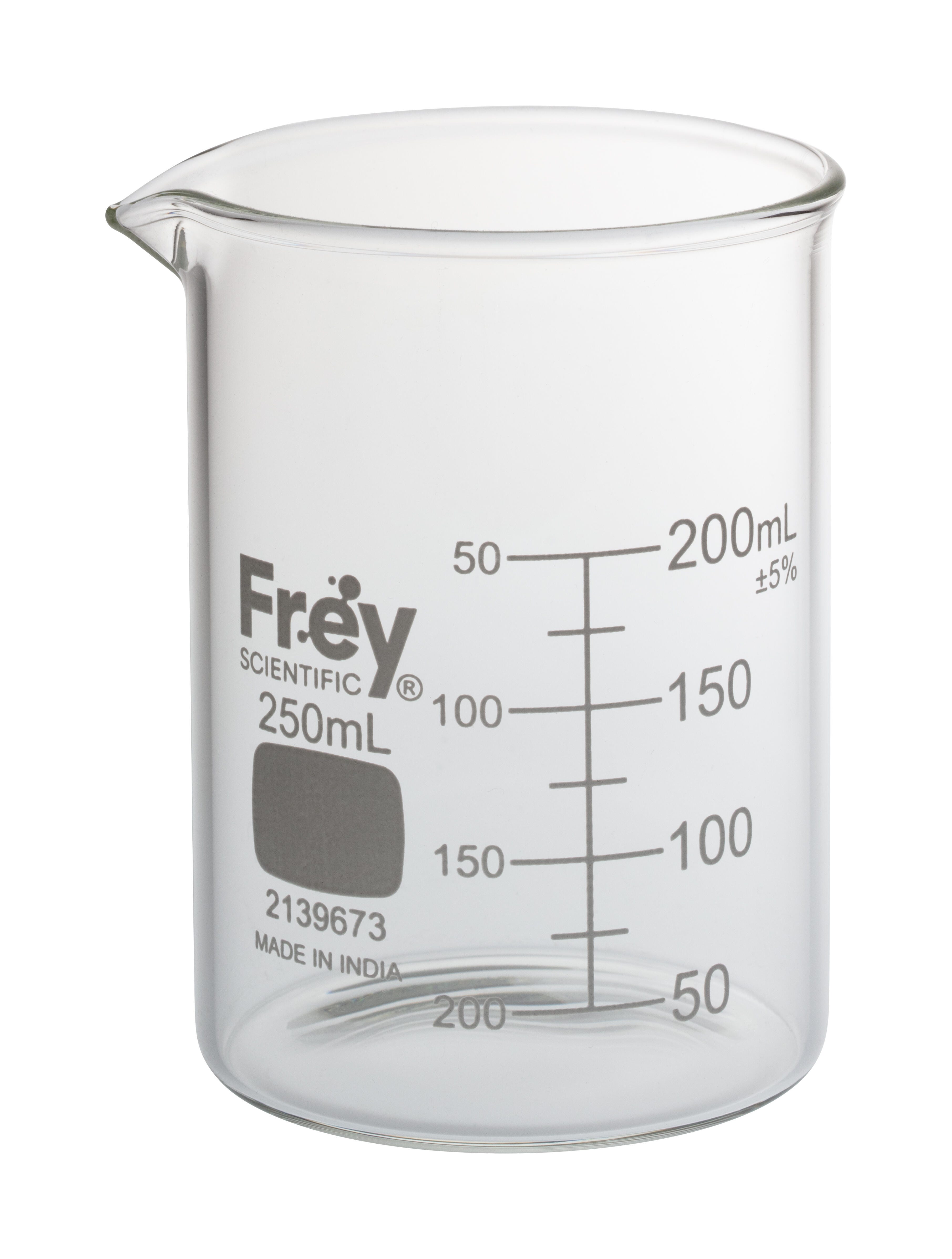 Frey Scientific Borosilicate Glass Beakers, 250 mL, Pack of 12