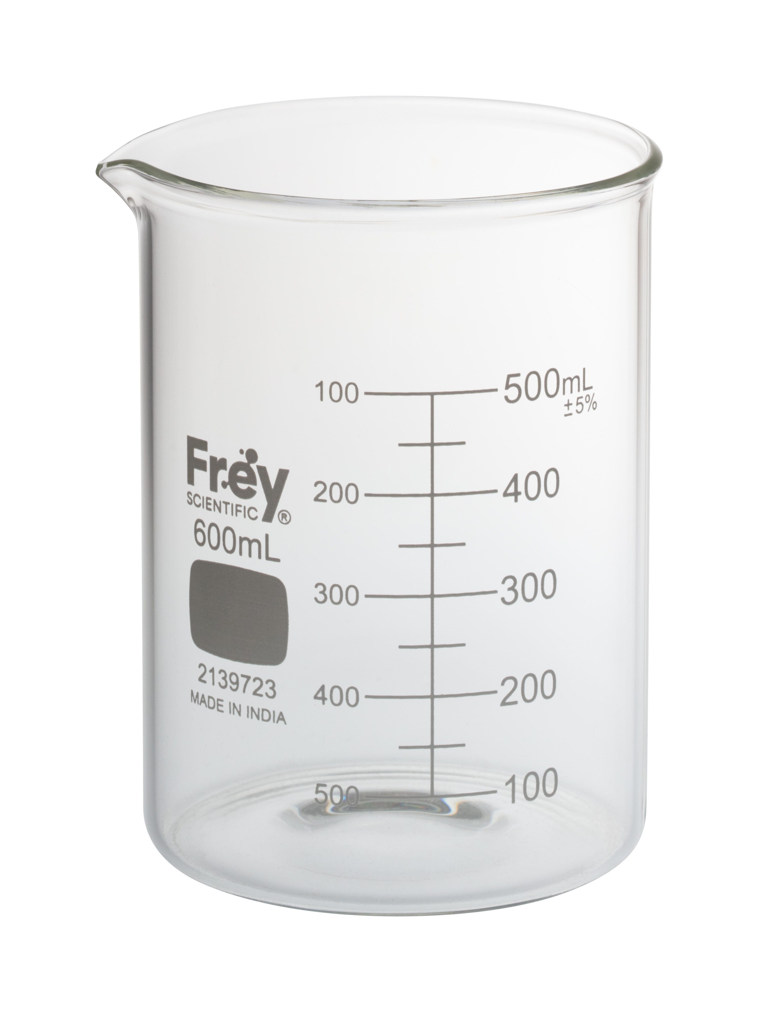Frey Scientific Borosilicate Glass Beakers, 600 mL, Pack of 6