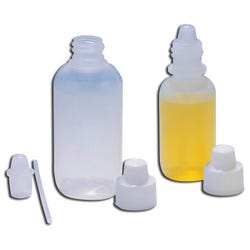 These Indicator Bottles Scienceware™ deliver double the utility and can be used as a dropper bottle or squirt bottle. The internal tube allows the bottle to squirt larger amounts and can be removed when more controlled drops are necessary. The bottles are especially effective when using indicator solutions or dyes. This pack contains 12 bottles.Features