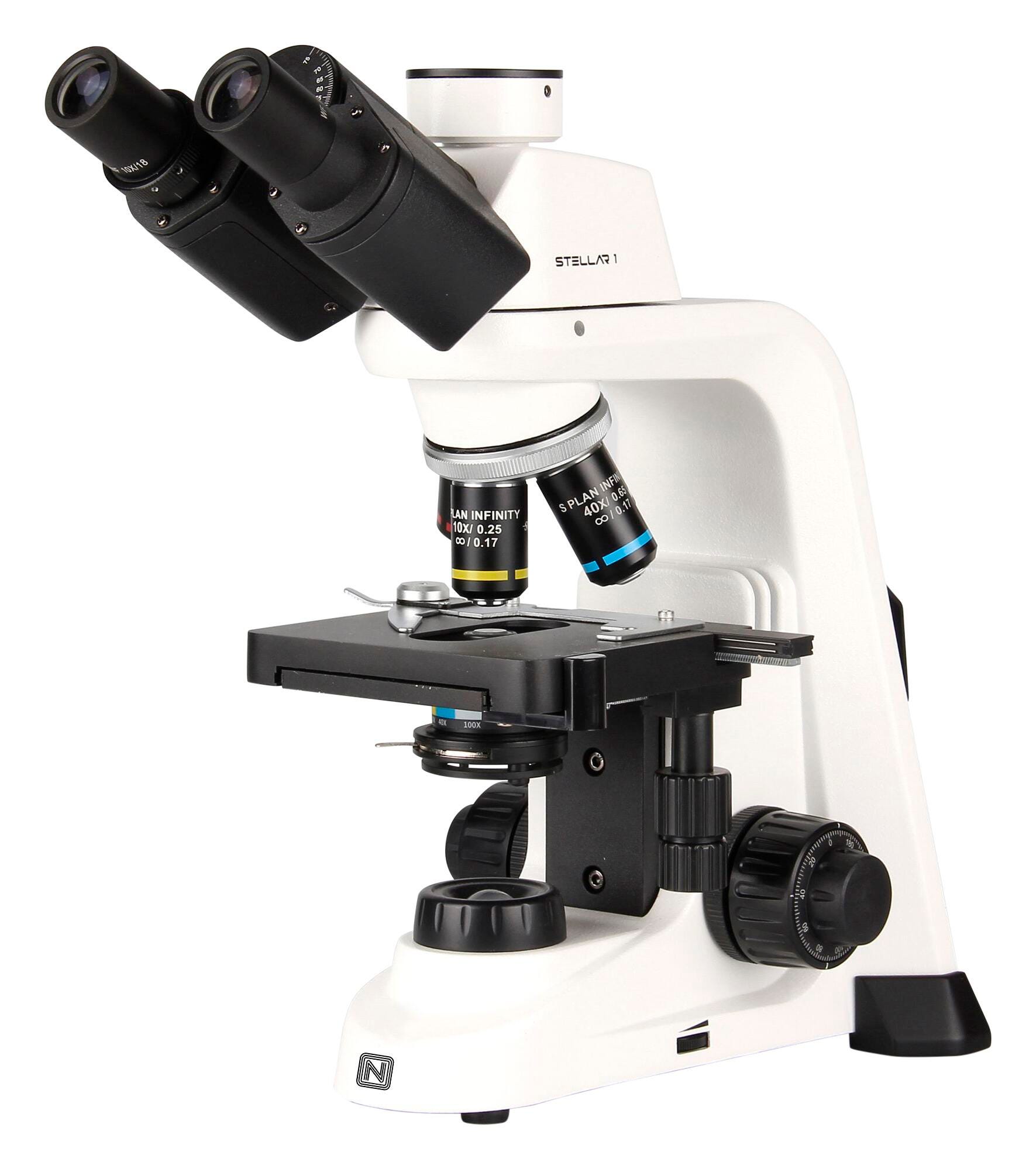 The Stellar Pro Series teaching biological microscopes adopts a new structural design and updated appearance. The Stellar PRO Series includes all of the features of the Stellar1 Series with the addition of an infinity corrected optical system for superb performance. Choose between binocular or trinocular heads with a choice of three objectives (4x ,10x, 40x) or four objectives which includes the 100x oil immersion lens.