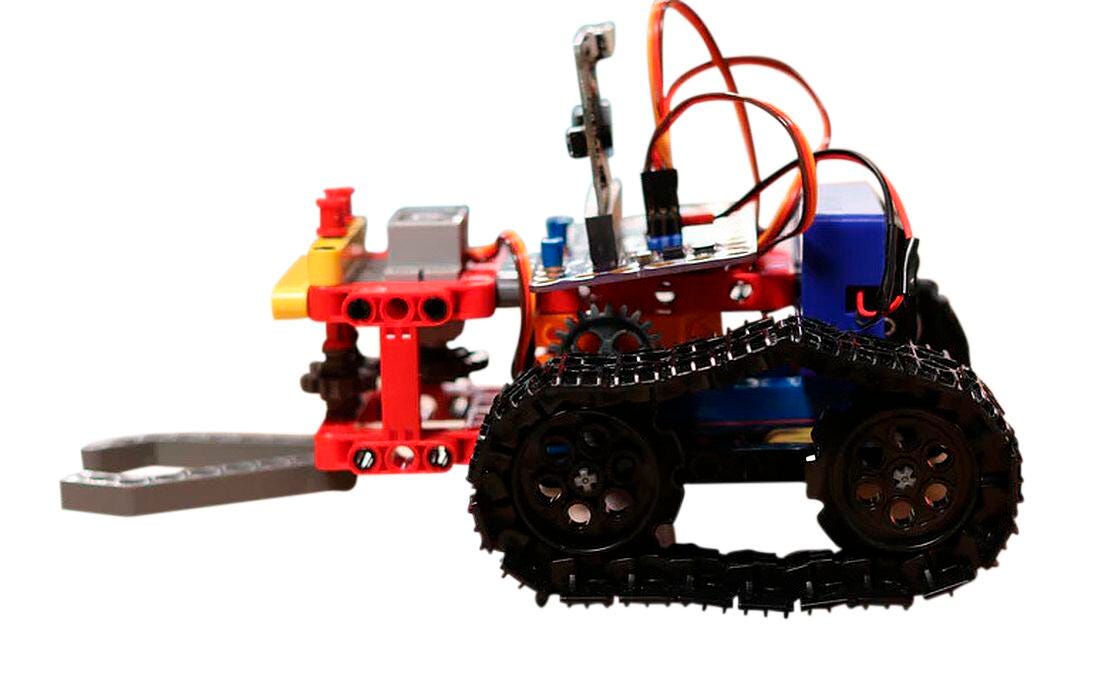 - Robot can be programmed or remotely controlled to lift, push, sweep, and grip objects