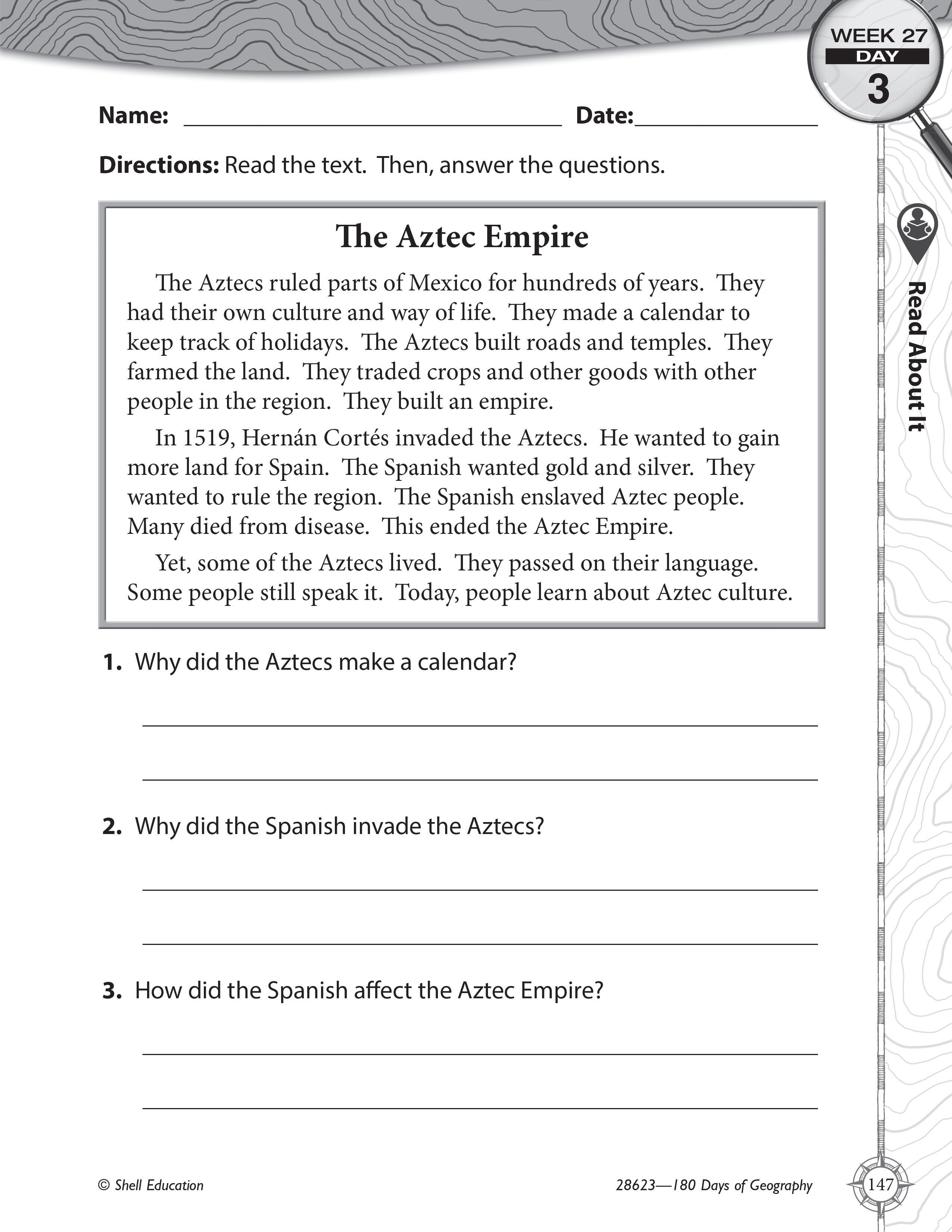 Provides teachers and parents with 180 days of daily practice to build students' geographical knowledge and skills.