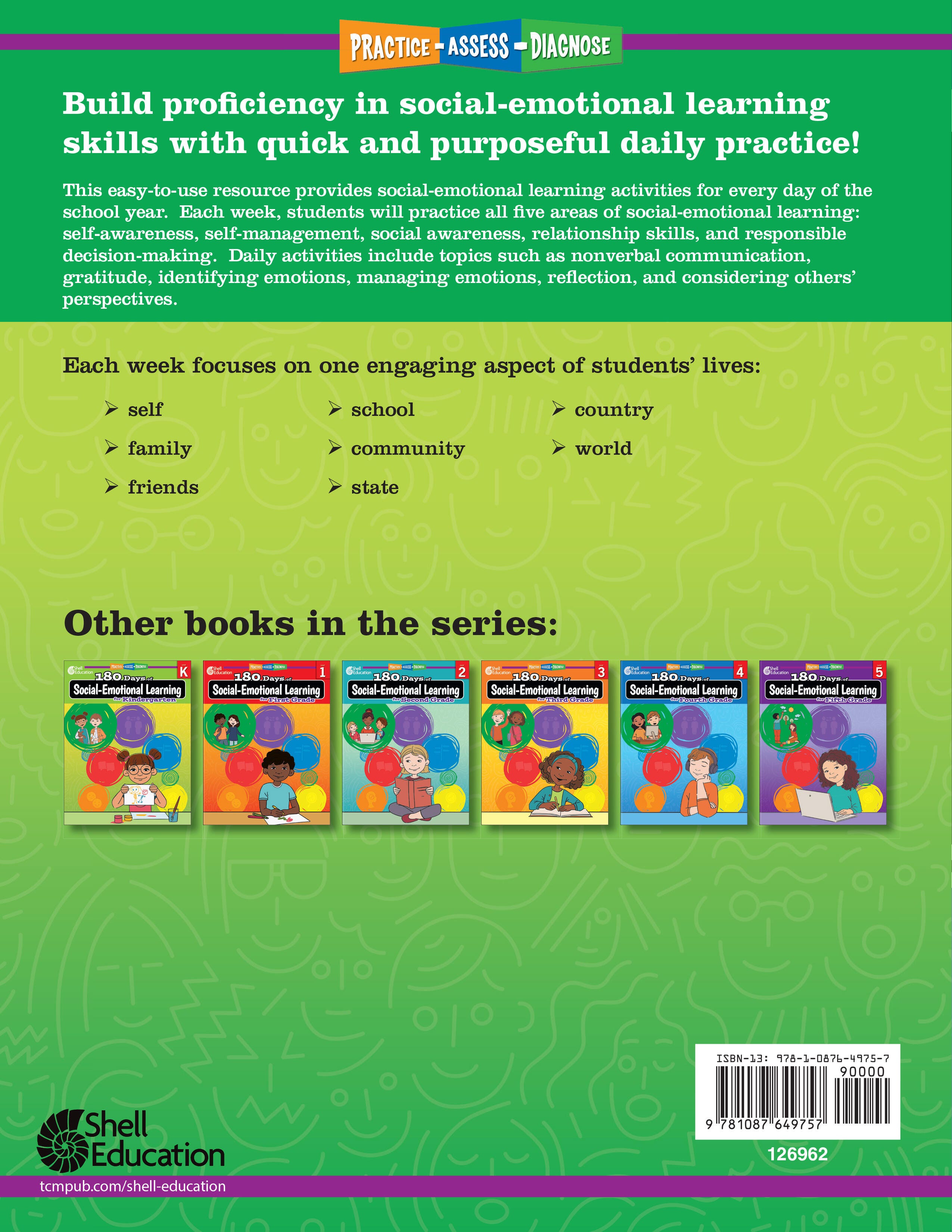 Uses daily activities to promote students' self-awareness, analyze relationships, discover diverse perspectives, and apply what they have learned; Builds student's confidence in self-reflection and growth through the use of fiction and nonfiction texts; Makes at-home learning, whole class instruction, or small group support, quick and easy; Connections will be made to the CASEL competencies, mindfulness, and key affective education initiatives