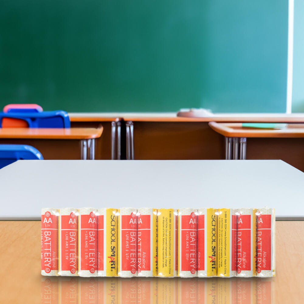 Description Keep your electronics energized with the School Smart AA batteries bulk pack. The 60 pack of AA batteries stands up to the rigors of the classroom and comes at an affordable price for teachers. Our long-lasting, high-quality alkaline batteries are ideal for everyday use. This set has 60 AA batteries.Features Buy AA batteries in bulk and save; this set features a 60 pack of AA batteries The pack helps ensure you always have an AA battery replacement ready to go Our AA alkaline batteries are high-quality for everyday use
