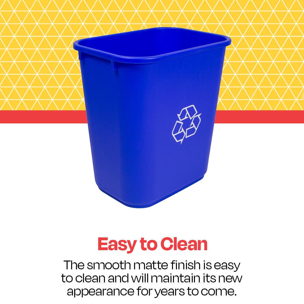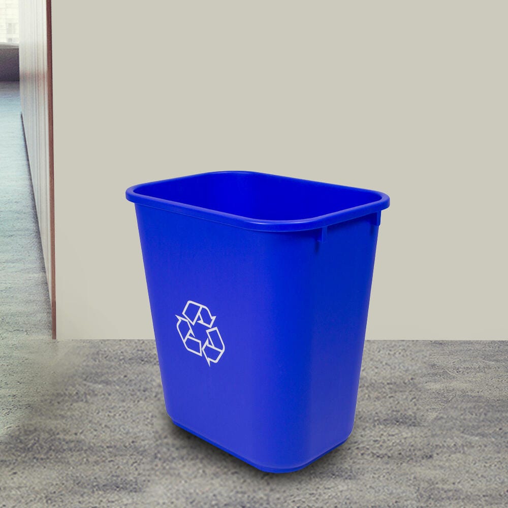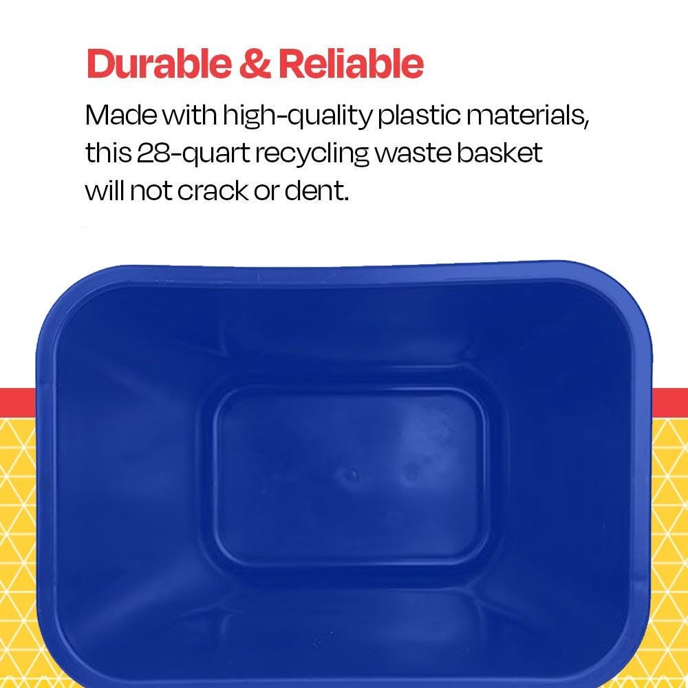 This 28-quart Indoor Recycling Waste Basket is the perfect size to store under a table, a desk, or in a cabinet for discrete and space-saving waste management. Its compact size is excellent for offices, bathrooms, bedrooms, dorm rooms, and other places where space may be limited. The durable plastic construction is crack- and dent-resistant and comes in a distinct blue color that immediately differentiates it from garbage cans.
