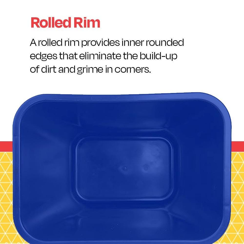 Rolled rim and rounded inner edges prevent build-up of dirt and make cleaning simple