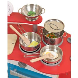 Sear, sauté, stew, strain, stir-fry! Your cooking chefs get to practice proper techniques with this safe dramatic play cookware by Melissa & Doug.