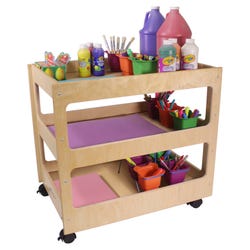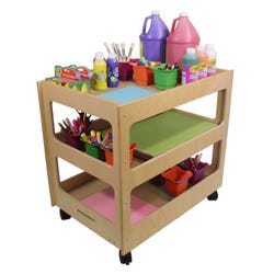 Easily organize and transport art supplies with this compact, mobile crafting cart designed for classrooms, childcare centers, and creative spaces.
