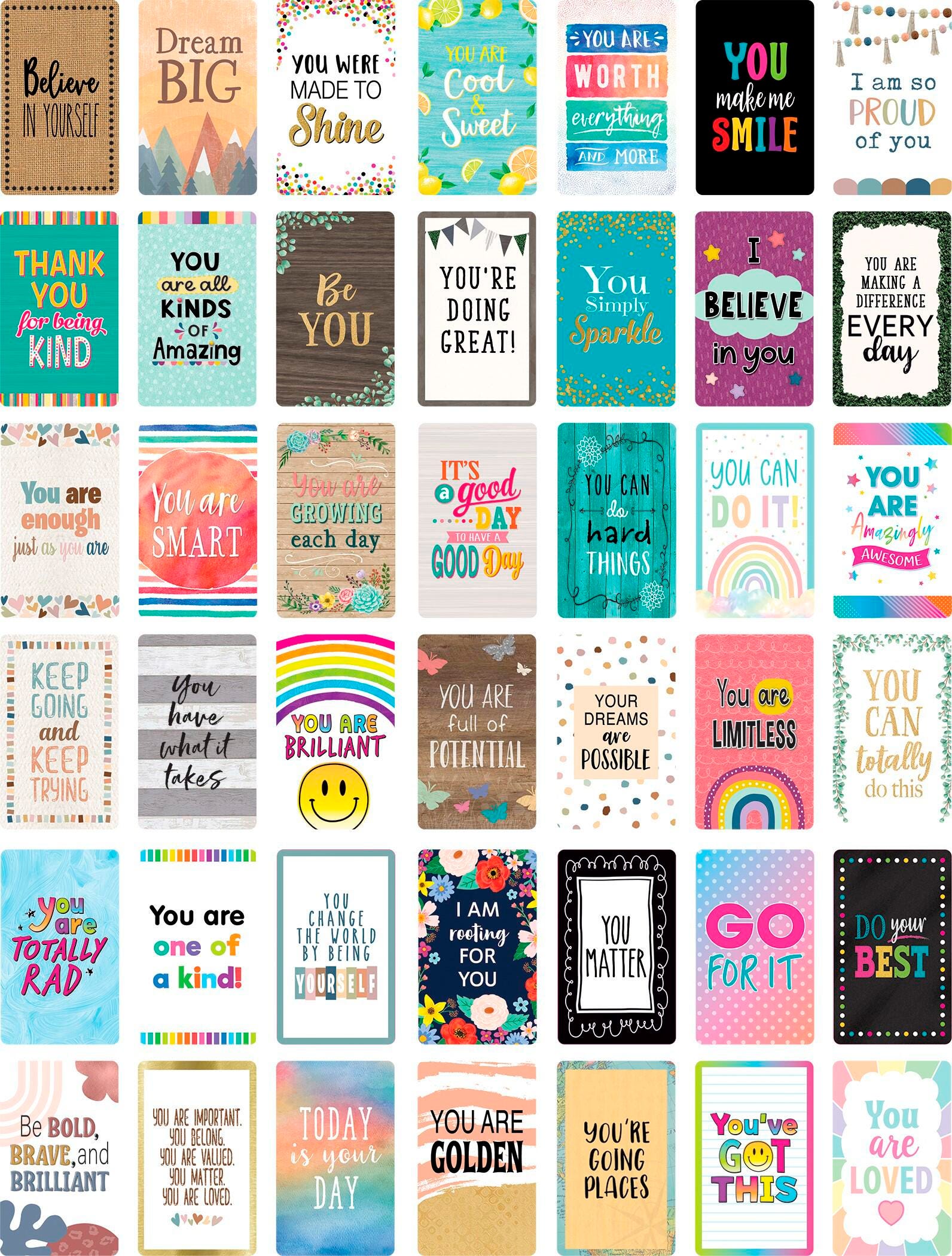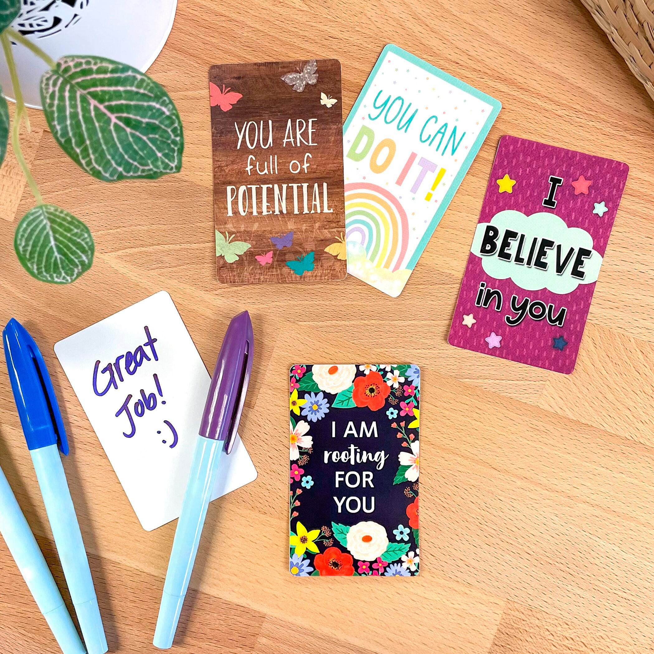 Features Pack of 42 cards means enough for each student, even for larger classes Small size makes it easy for students to keep with them for when they need a boost Hand them out individually, clip them to student work or find other creative ways to spread positivity Includes: