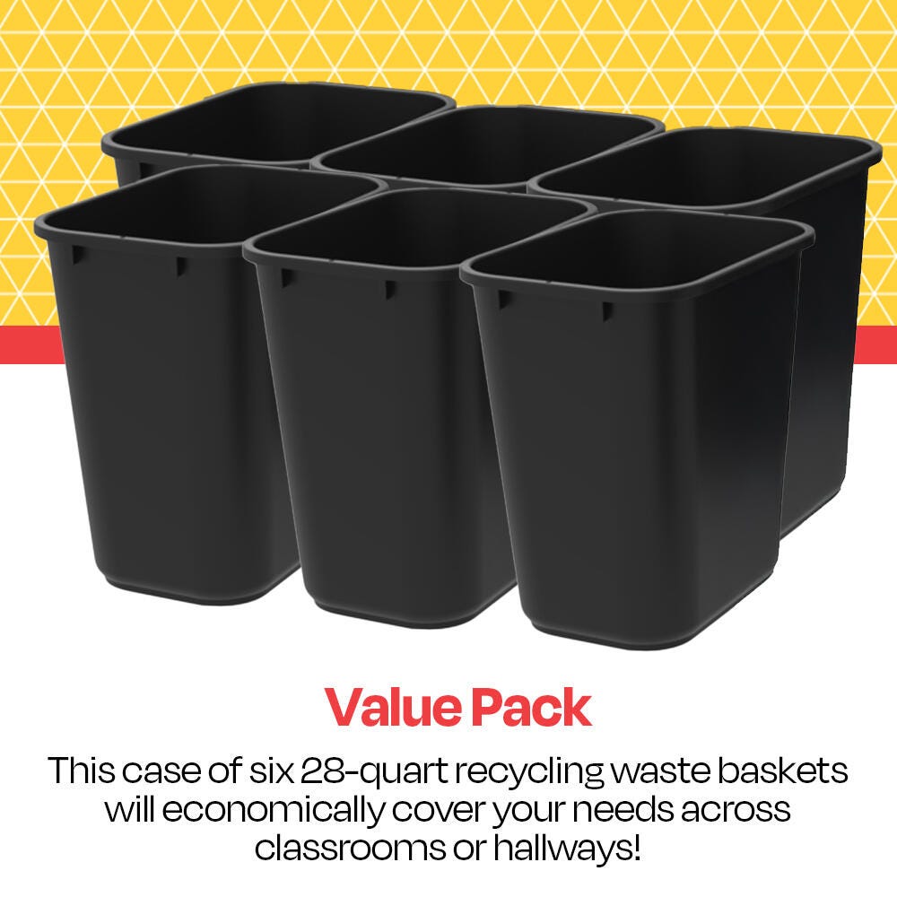 School Smart Indoor Waste Basket, 28 Quart, Black, Case of 6