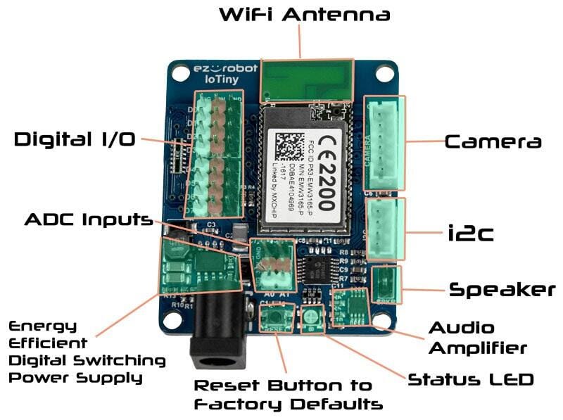 Build your robot or IoT project from scratch. The Developer Kit includes the powerful and compact IoTiny controller, vision camera, servos, battery holder and more. This innovative platform includes the hardware and software that enables you to customize your robot creations. If offers hundreds of features speech recognition, vision tracking, glph recognition, joystick/Wii remote, HTTP server, mobile device support custom scripting, object avoidance, GPS/compass tracking and more. This powerful kit is perfect for any skill level, from beginner to advanced, with its graphical control interface, custom scripting abilities, and full-featured SDK. Ease and power are reasons that EZ-Robot has been the driving force behind countless robots for hobbyists, competitions, schools and R&D facilities in over 120 countries. Note: This product requires ARC Software.