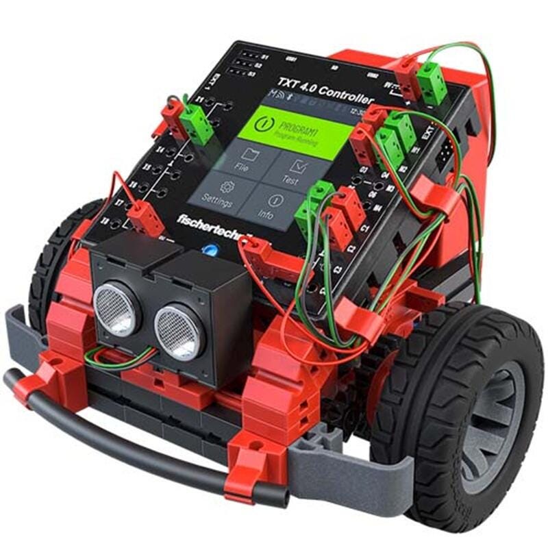 The fischertechnik Robotics TXT 4.0 Base Set is the perfect way to get started programming like the pros! The comprehensive building set includes a camera with image processing as well as an ultrasound sensor, two encoder motors, a track sensor, a phototransistor, two buttons and two LEDs. The model can be programmed and controlled with ROBO Pro Coding graphic programming software and the ROBOTICS TXT 4.0 controller. Beginners can refer to finished example programs, while advanced users and professionals can get started directly in a Blockly library or in Python. The set includes twelve exciting models, ranging from a pedestrian signal to a barrier, a bar code scanner, and mobile driving robots with encoder motors, cameras, track and distance sensors. The comprehensive teaching materials include introductory and basic information, as well as 20 experiments with solutions for the twelve models. Students will be able to build 12 robotic models, including a traffic light, barrier, Morse key, barcode scanner, data transmission device, encryption device, driving robot with different tasks (obstacle detector, distance meter, digital and analog lane follower), and a painting robot.