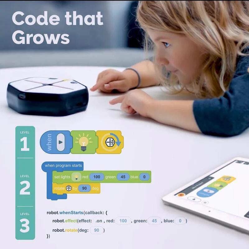 Root robots bring abstract coding concepts to life by allowing students to program the robot's actions in real-time