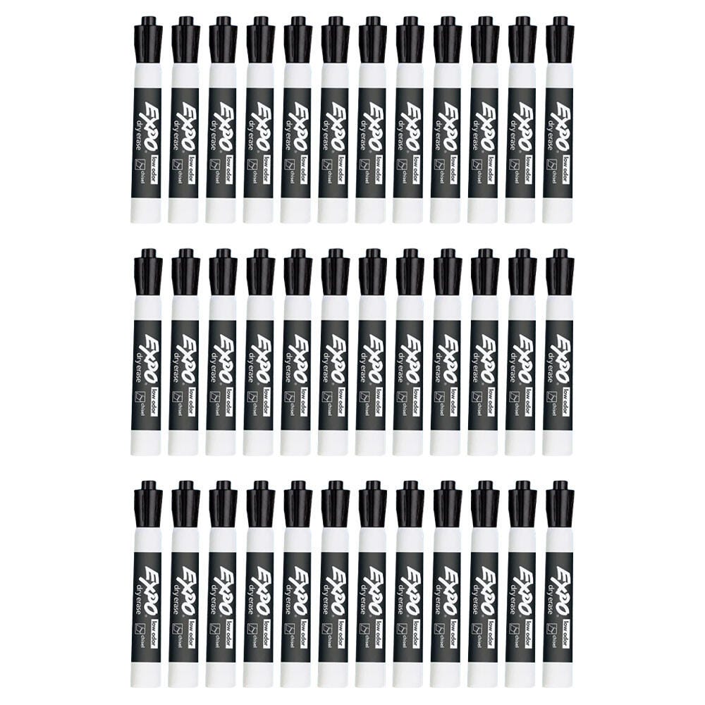 EXPO Low Odor Dry Erase Markers, Chisel Tip, Black, Pack of 36