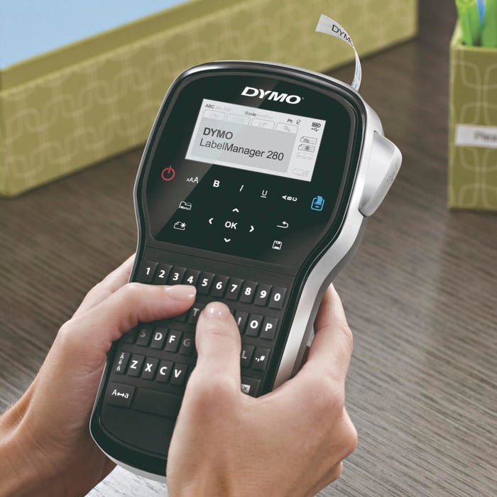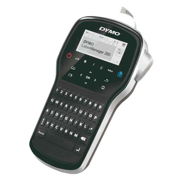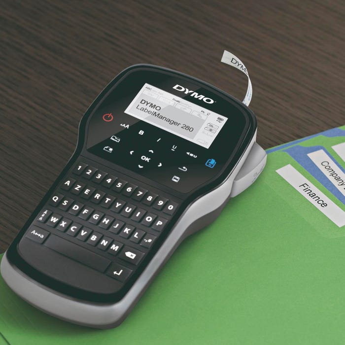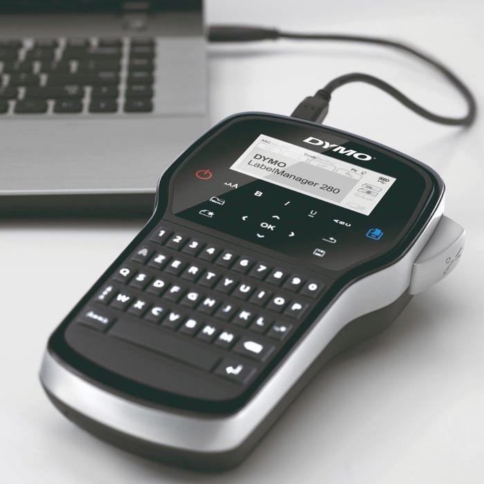 The LabelManager® 280 from DYMO delivers labels faster with time-saving features. Edit text easily with one-touch fast-formatting keys. Type text quickly and comfortably on the computer-style (QWERTY) keyboard that features a convenient country-specific layout. The long-lasting rechargeable battery allows for uninterrupted mobile printing and saves you the cost and hassle of disposable batteries. Customize labels with any fonts and graphics on your computer through a PC or Mac connection. The LabelManager 280P also features a manual tape cutter, three fronts, six type sizes, seven styles, 221 symbols, repeat printing, auto numbering, and mirror/vertical printing. Label printer includes a charging cable and a black/white starter D1 cassette.Features