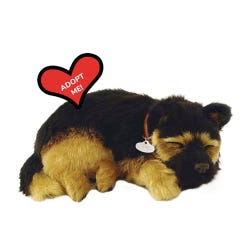 These adorable life-like animals offer a pet companionship experience that all ages can enjoy, without the hassle and responsibilities of caring for a real pet! Each pet "breathes" and their 100% synthetic fur is soft to stroke as they rest in your lap. Pets will breathe continuously for approximately 3-4 months by using the alkaline D battery (included) - possibly longer should you disconnect the battery between uses. No on-off switch. Clean only with a soft cloth lightly dampened with water to keep neat and tidy. German shepherd plush measures 9-1/2 L x 7 W x 3 H inches. Carrier box measures 11 L x 7-3/4 W x 5 H inches when flat, 11 L x 7-3/4 W x 9 H inches when tent is up. Bed measures 13 L x 10 W x 2 H inches.