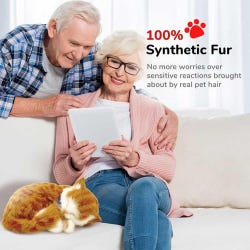 These adorable life-like animals offer a pet companionship experience that all ages can enjoy, without the hassle and responsibilities of caring for a real pet! Each pet "breathes" and their 100% synthetic fur is soft to stroke as they rest in your lap. Pets will breathe continuously for approximately 3-4 months by using the alkaline D battery (included) - possibly longer should you disconnect the battery between uses. No on-off switch. Clean only with a soft cloth lightly dampened with water to keep neat and tidy. Orange tabby cat plush measures 9-1/2 L x 7 W x 3 H inches. Carrier box measures 11 L x 7-3/4 W x 5 H inches when flat, and 11 L x 7-3/4 W x 9 H inches when tent is up. Bed measures 13 L x 10 W x 2 H inches.